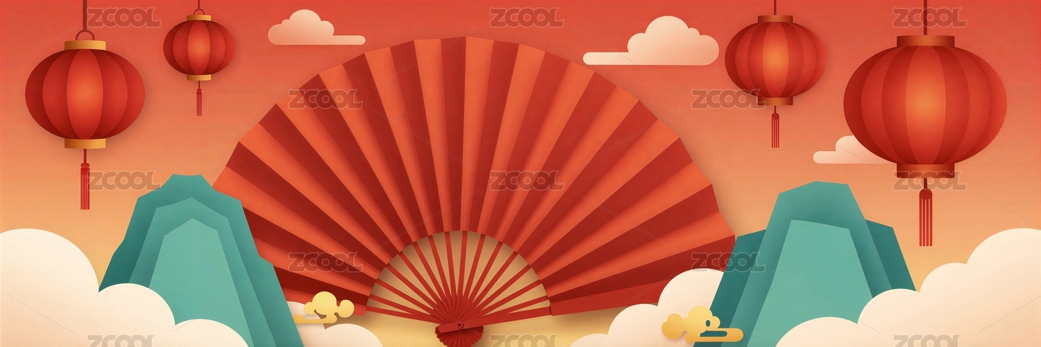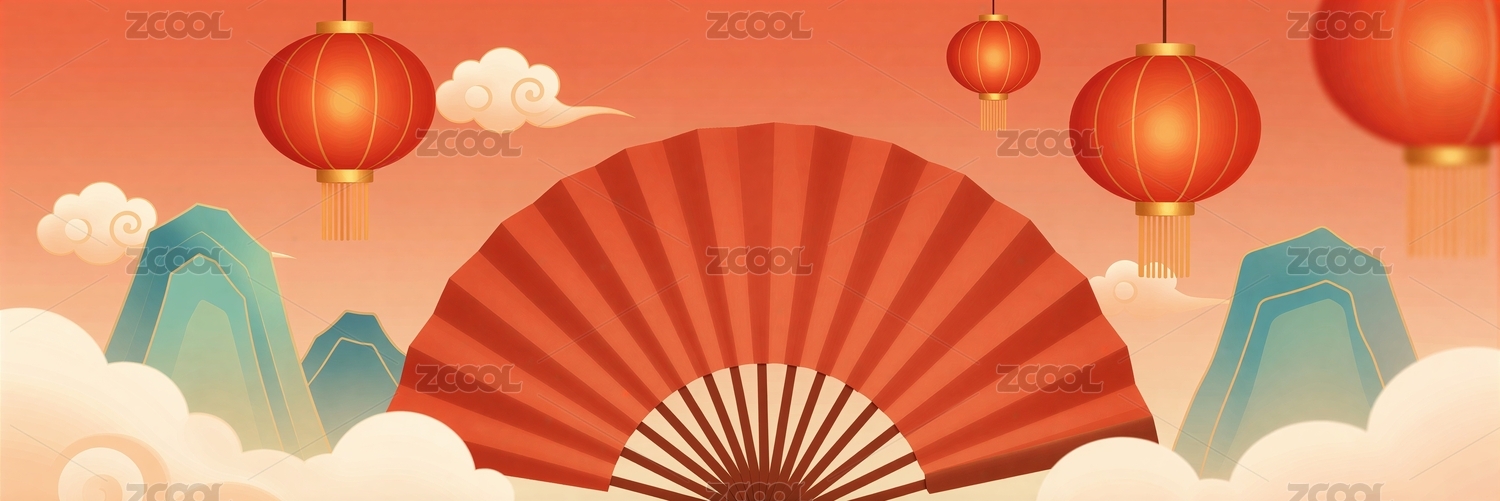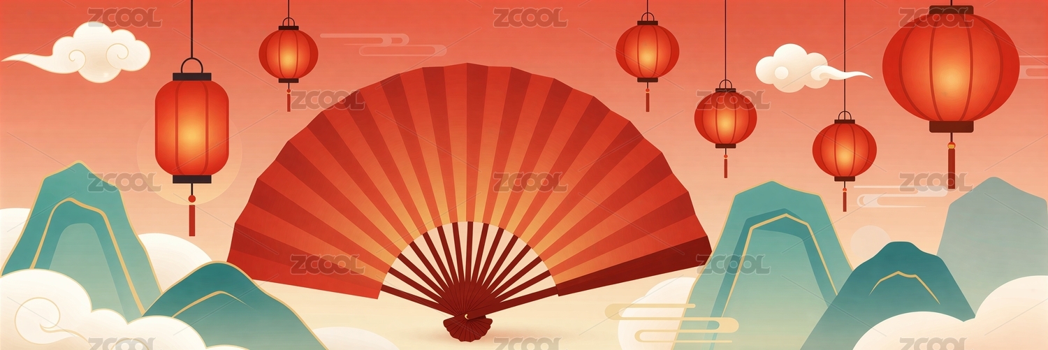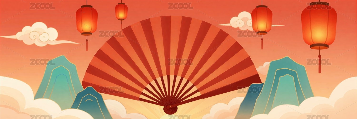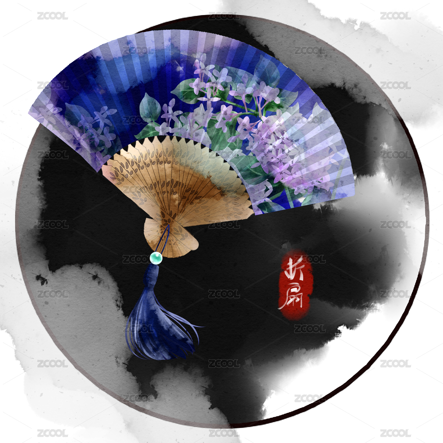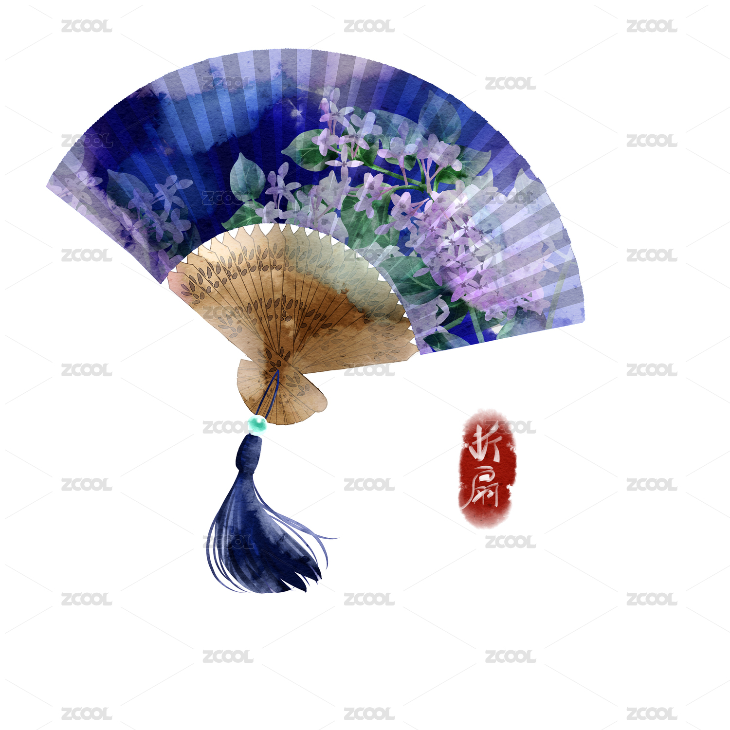 水彩風(fēng)格中國(guó)古代折扇插畫