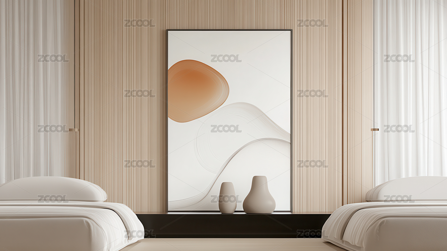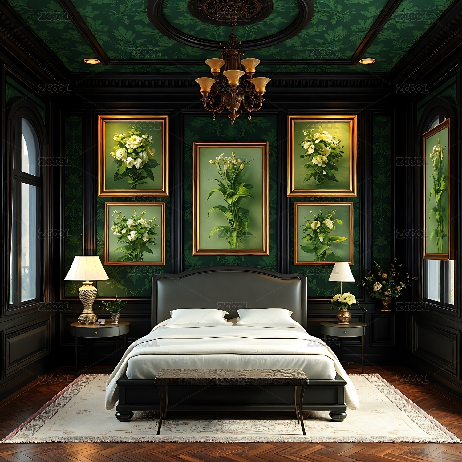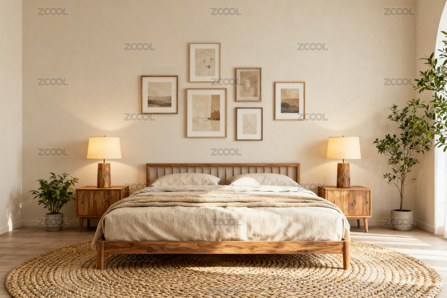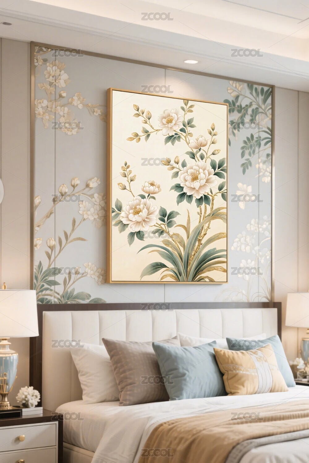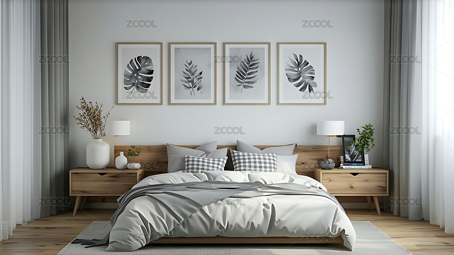 現(xiàn)代簡約臥室植物圖案裝飾畫木質(zhì)家具溫馨舒適