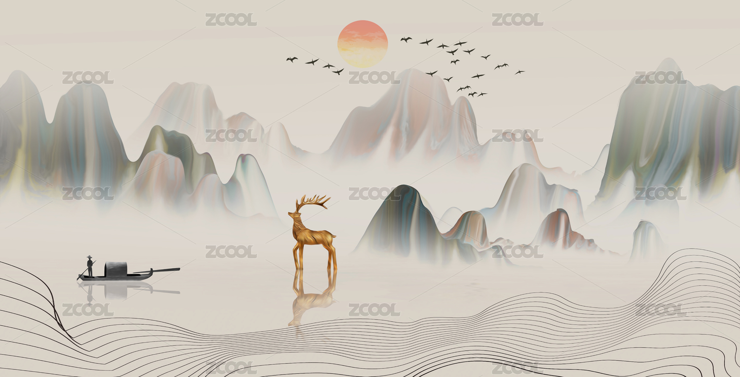 新中式意境水墨山水風景畫客廳臥室裝飾畫