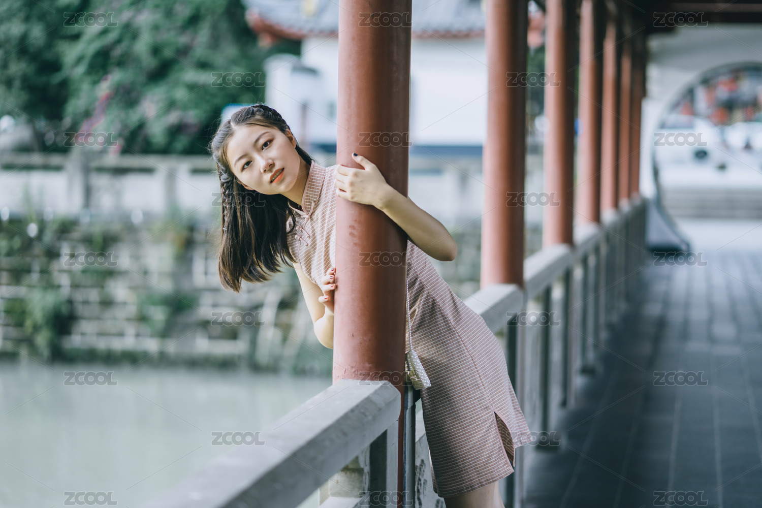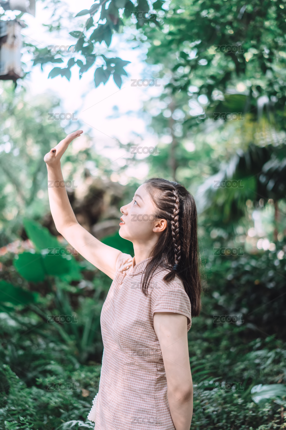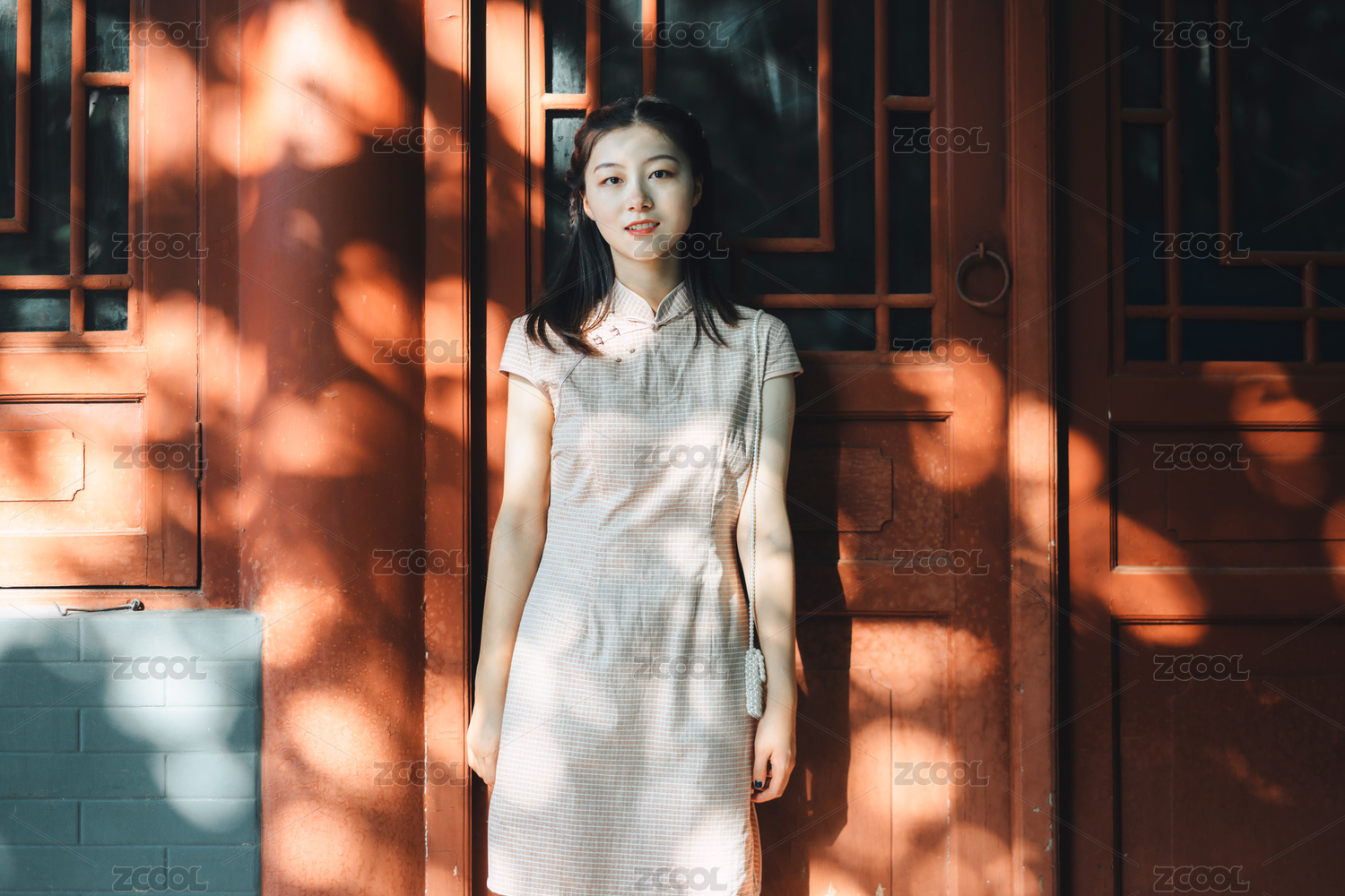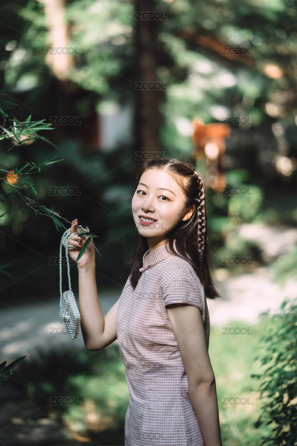 中國古典園林風(fēng)穿旗袍的美麗女孩