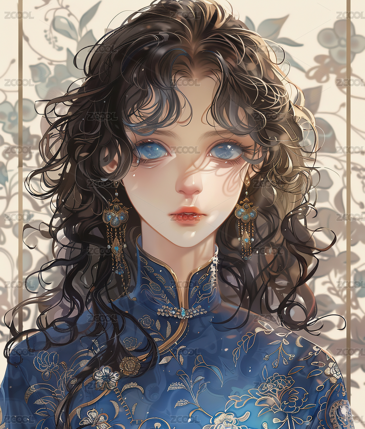 服裝雜志封面畫輕奢畫民國穿旗袍女人新中式裝飾畫
