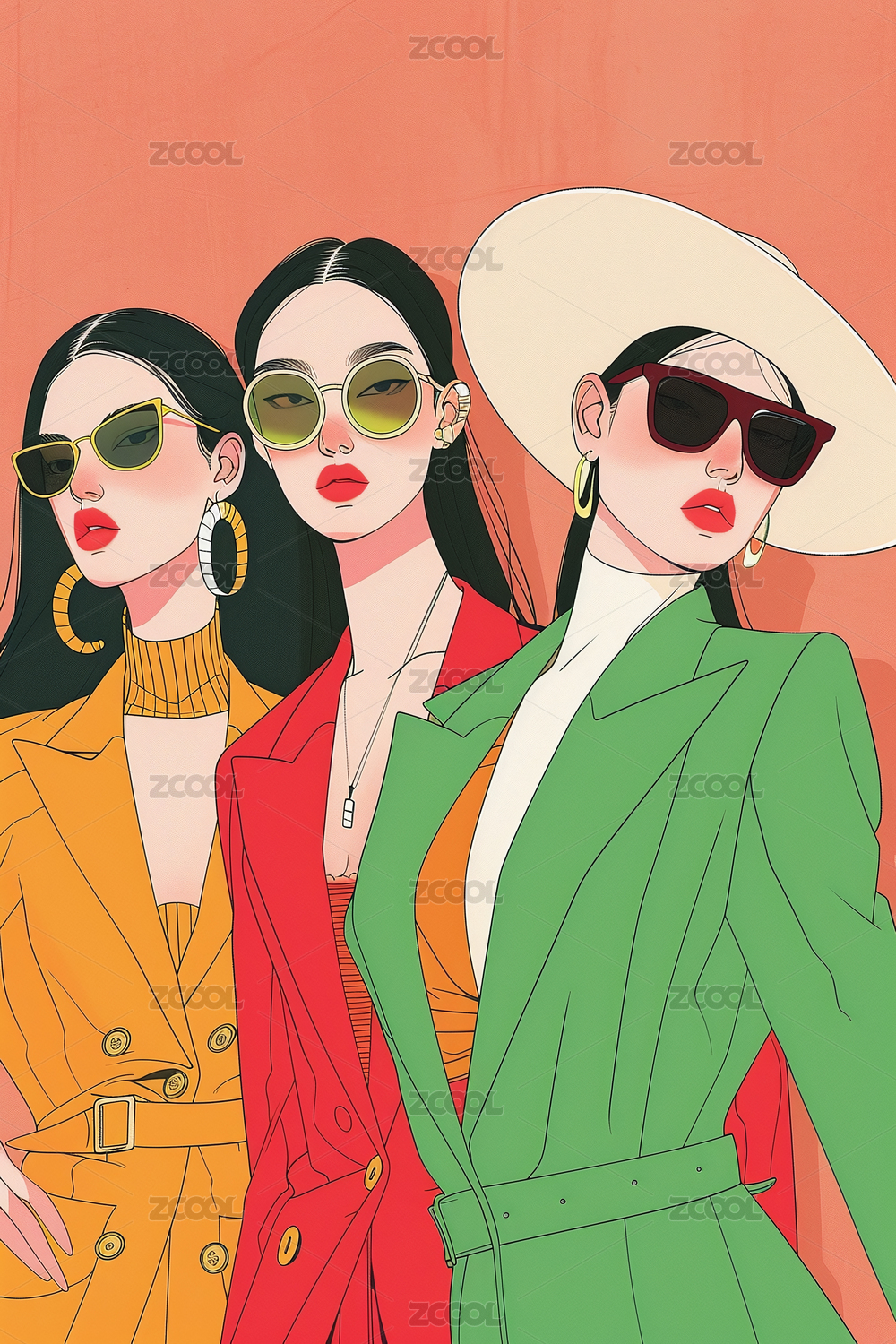 時(shí)尚服裝畫水墨人物裝飾畫服裝雜志封面文旅海報(bào)宣傳畫