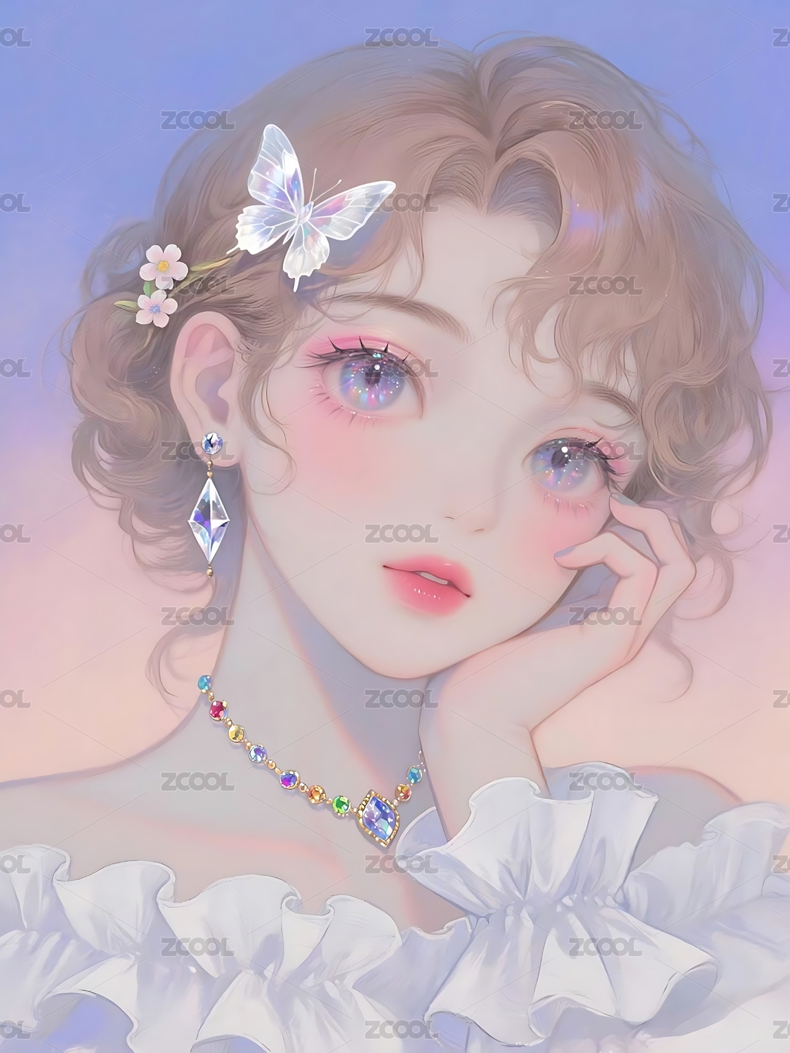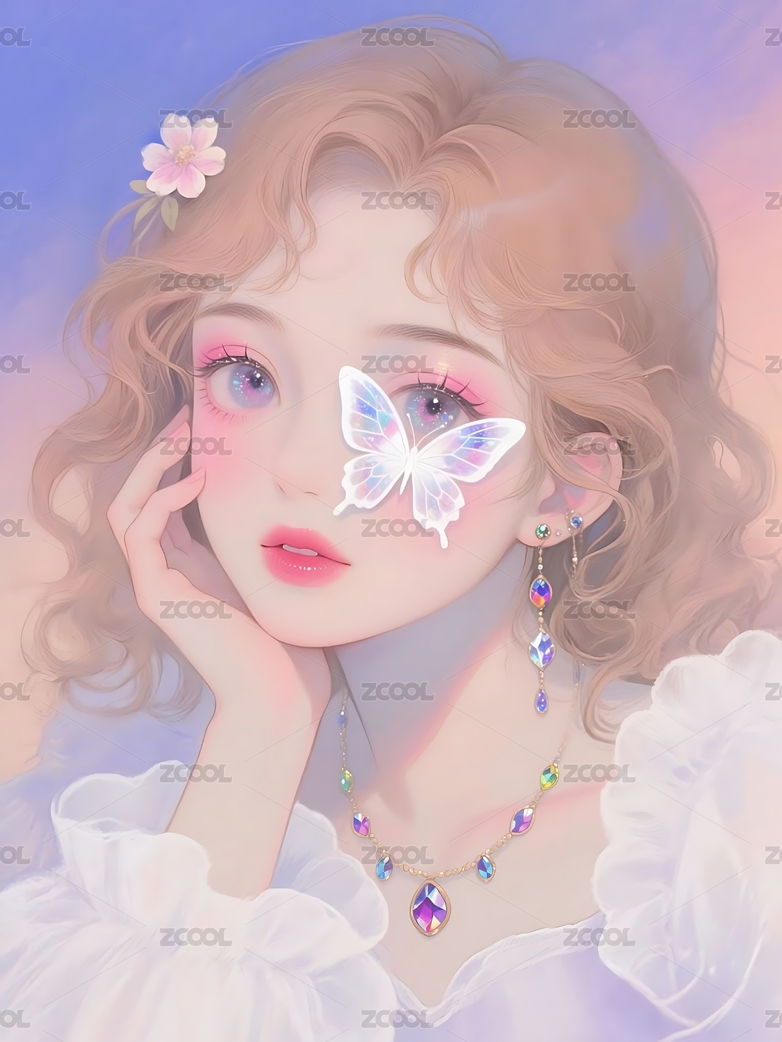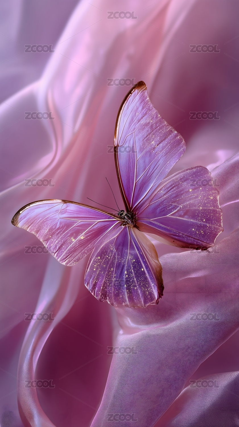 紫蝶棲于粉柔絲緞翼間星芒暈染浪漫綺夢