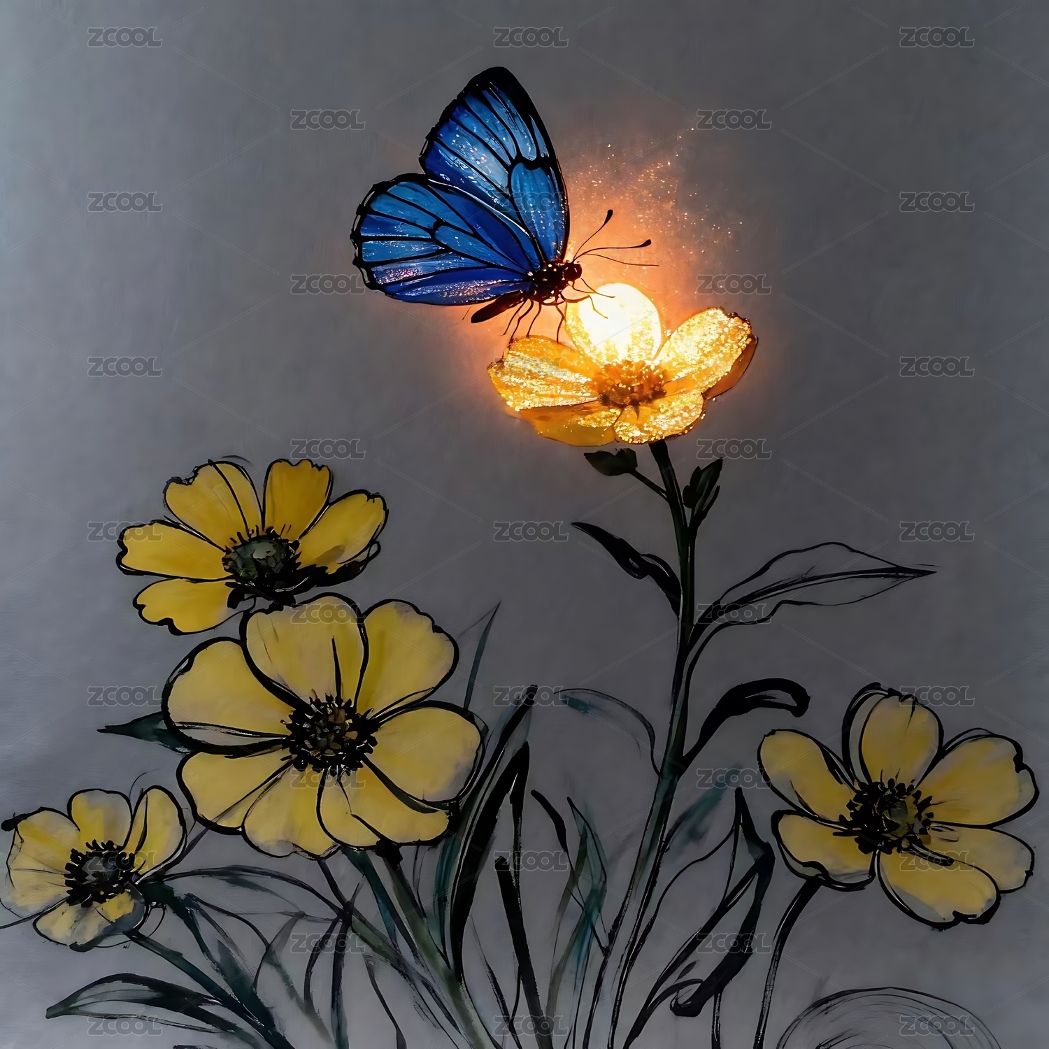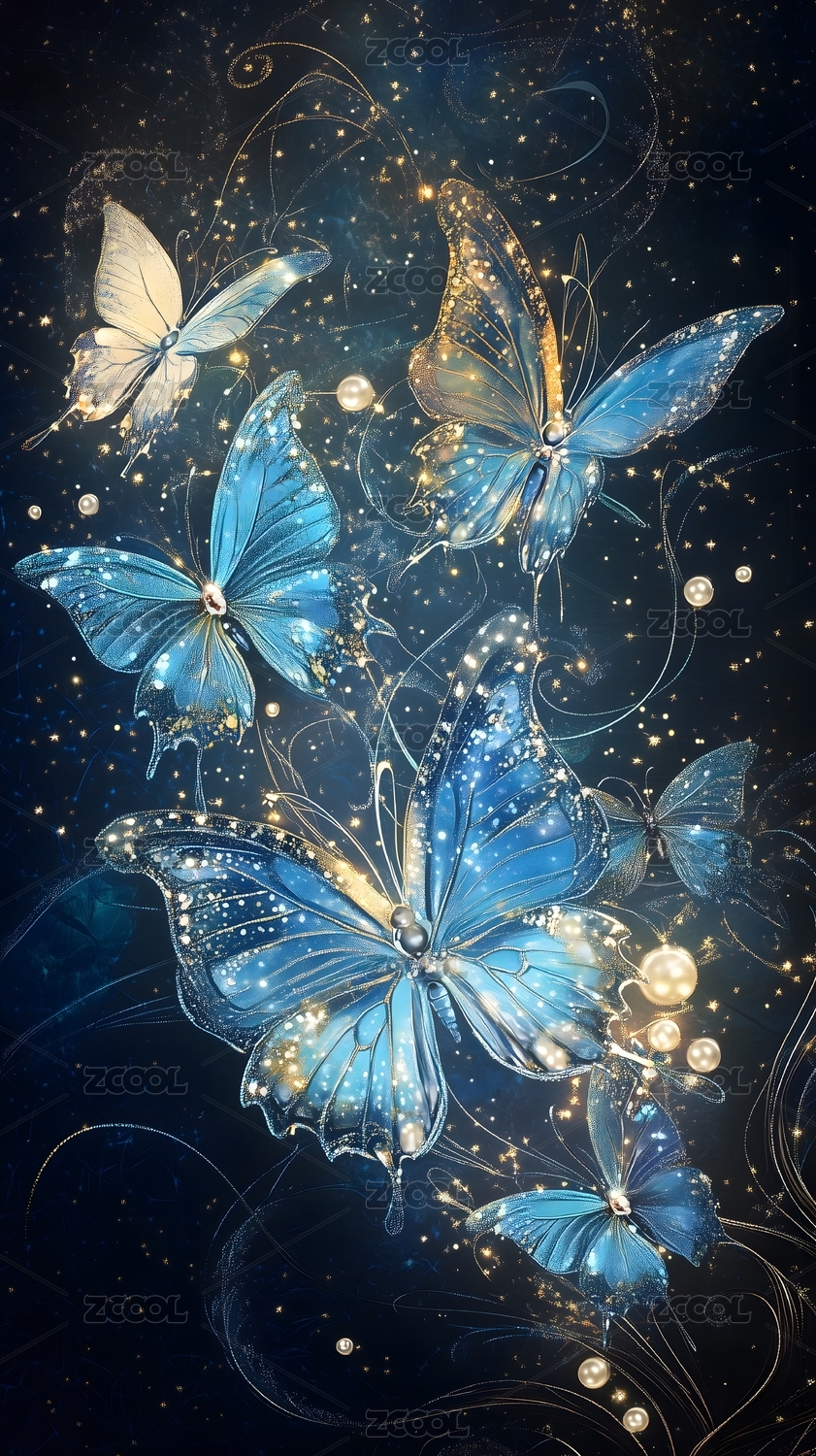 藍蝶逐星芒,幻翼纏光漫舞清宵