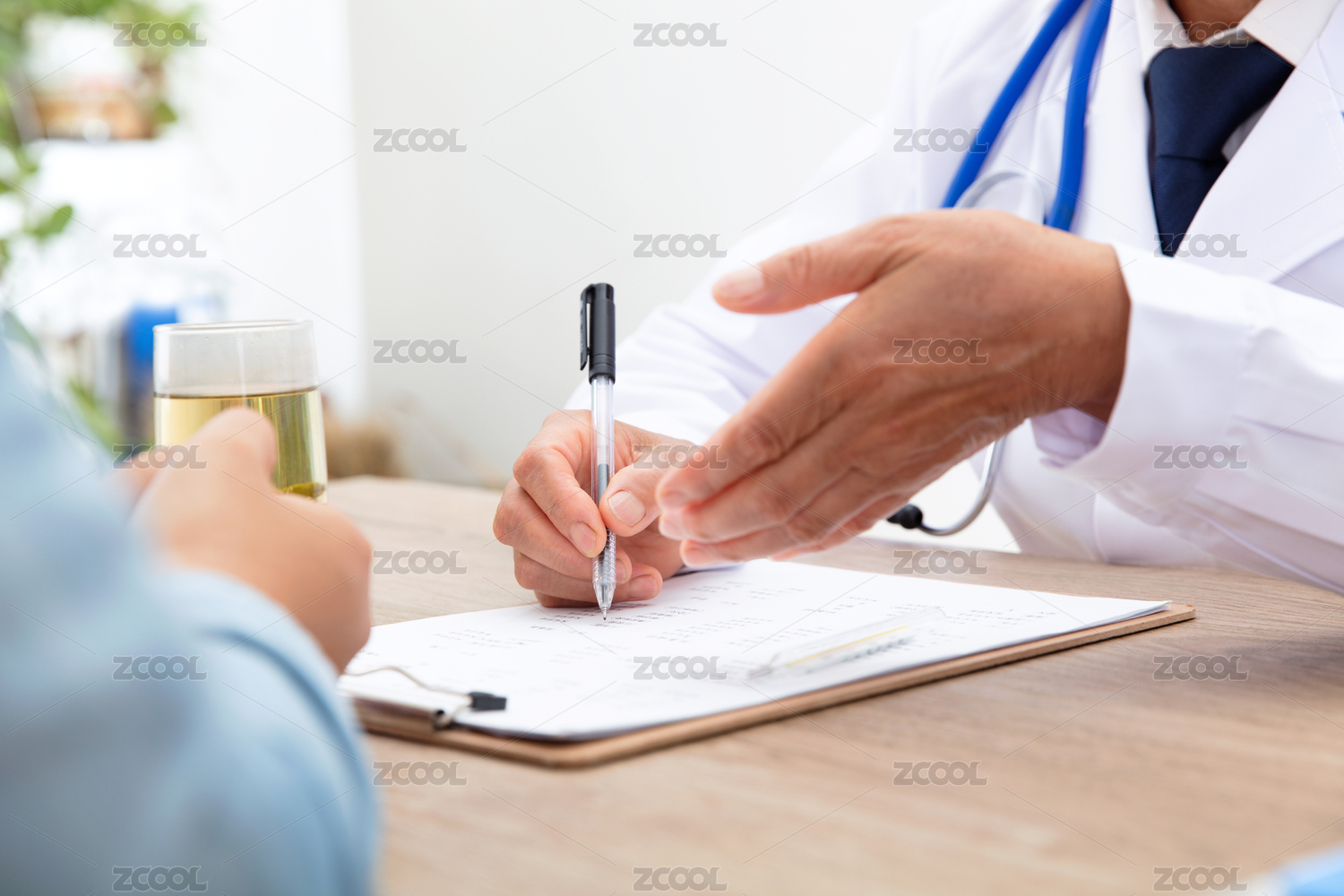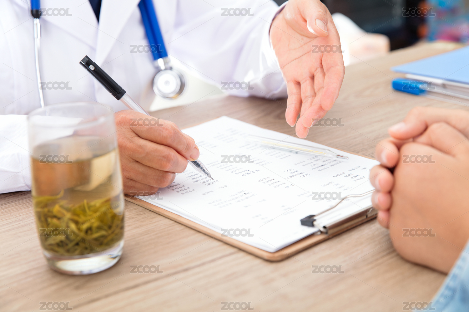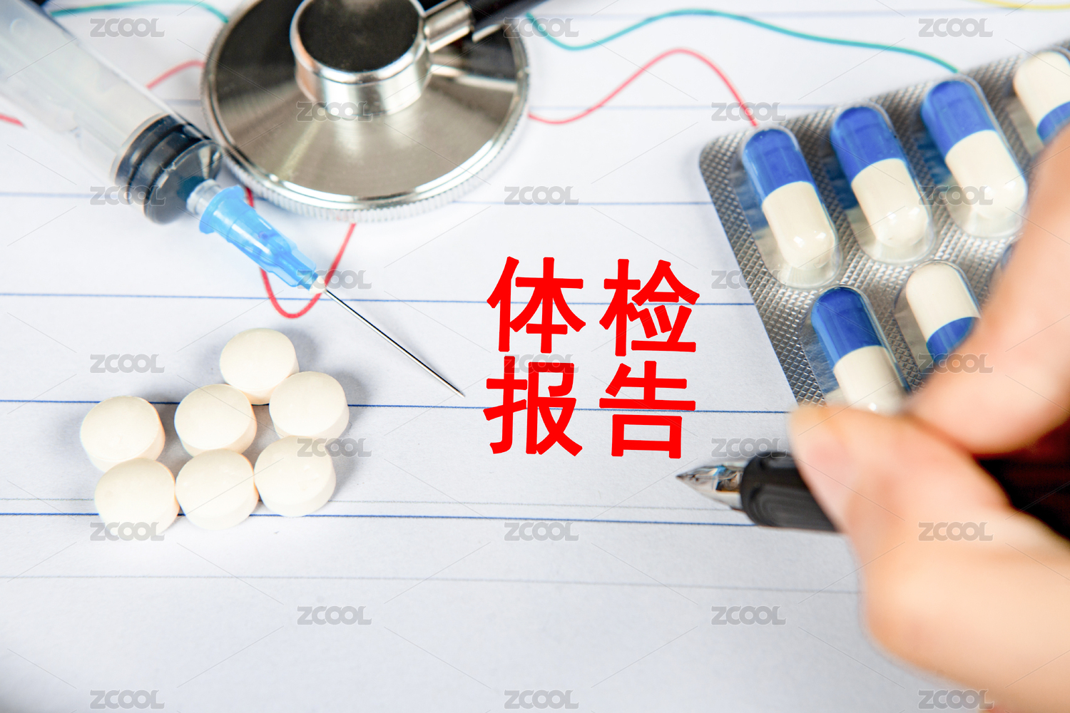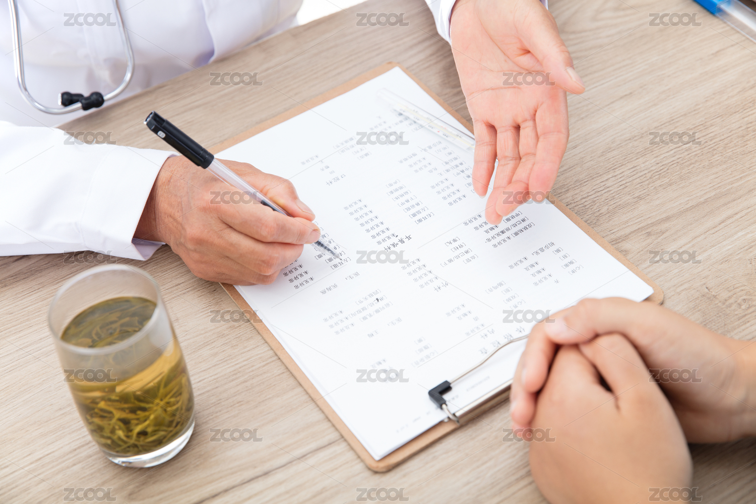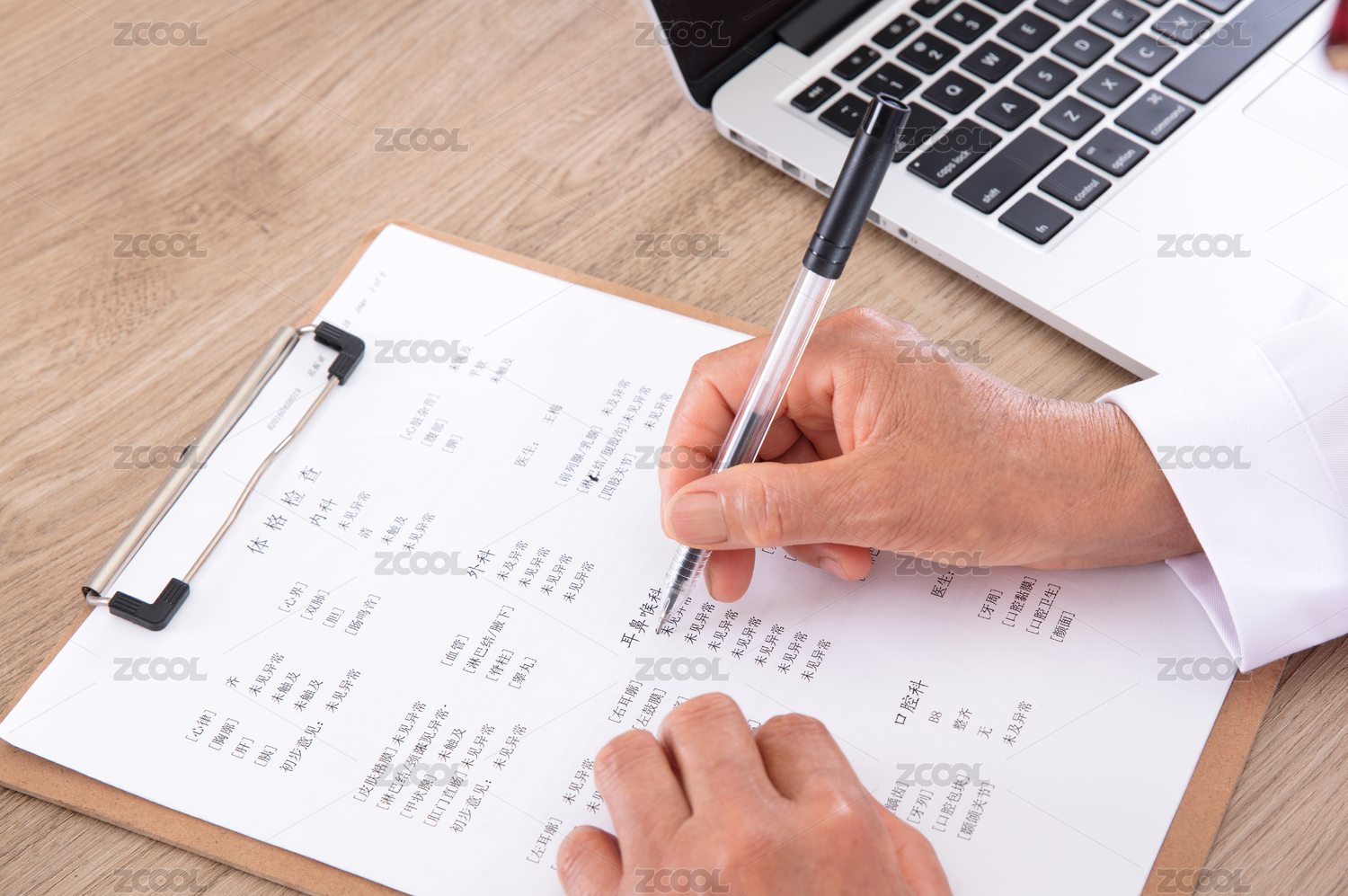 醫(yī)生手拿筆在體檢報(bào)告上檢查各項(xiàng)指標(biāo)