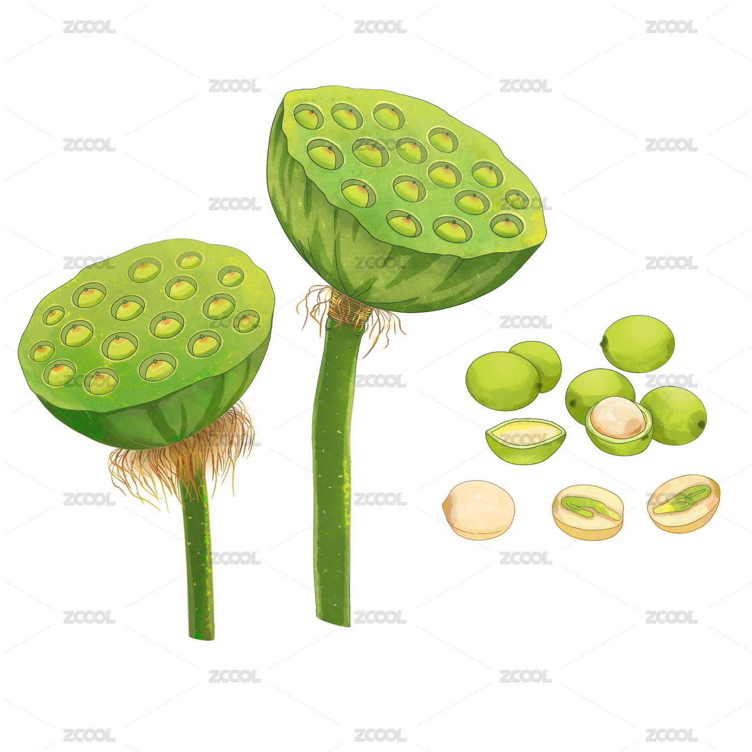 古典蓮蓬童子逗趣創(chuàng)意工筆矢量手繪創(chuàng)意插畫