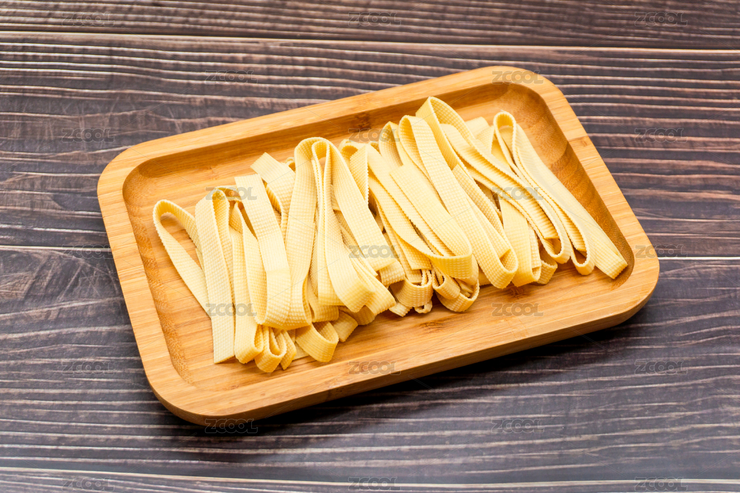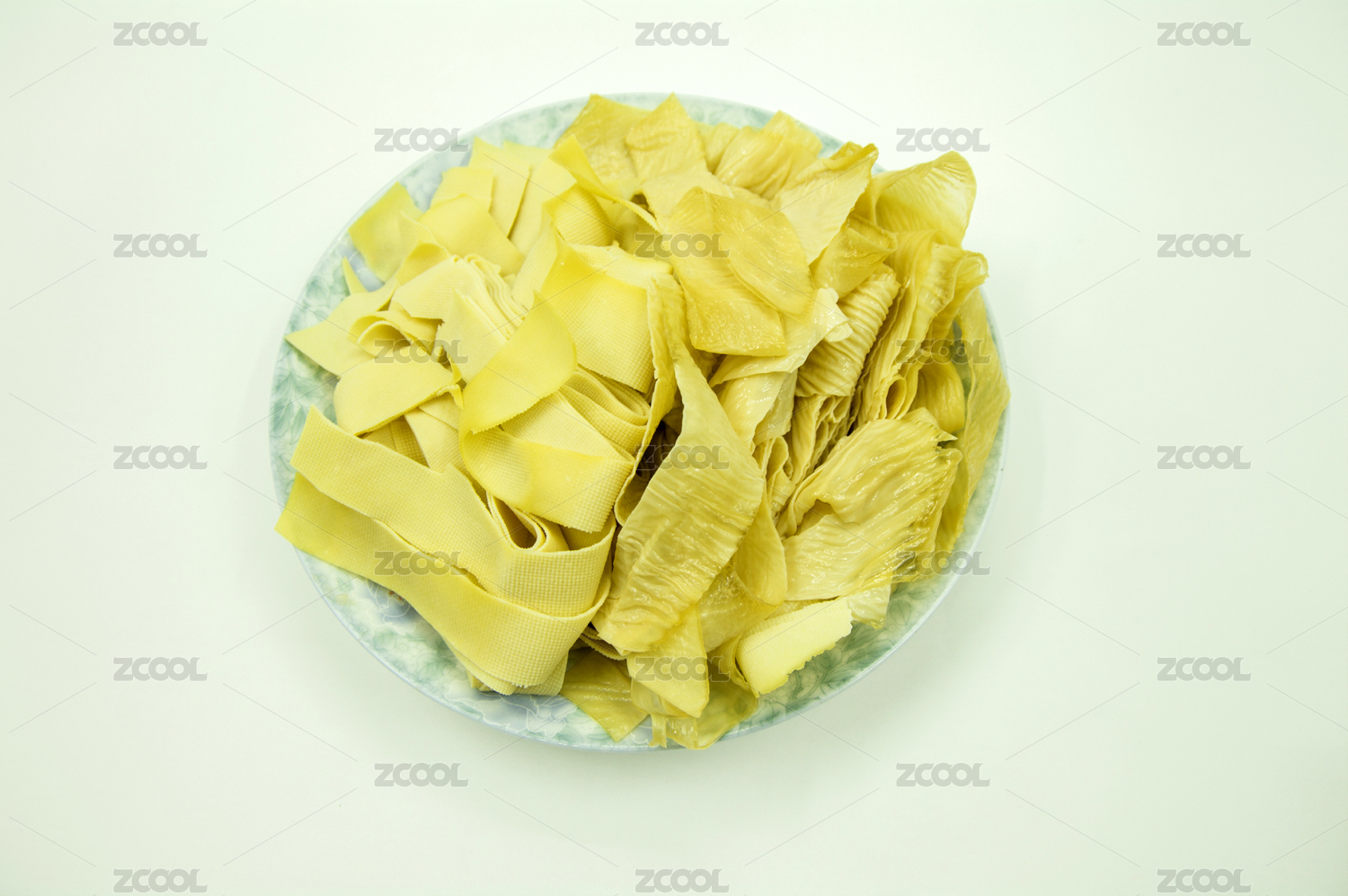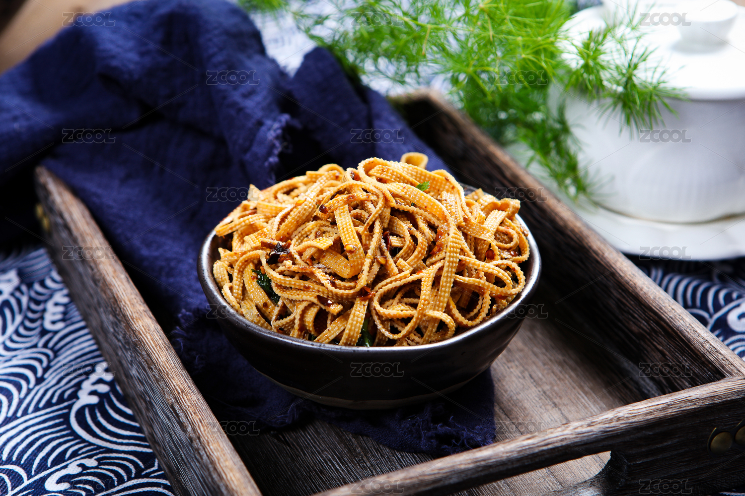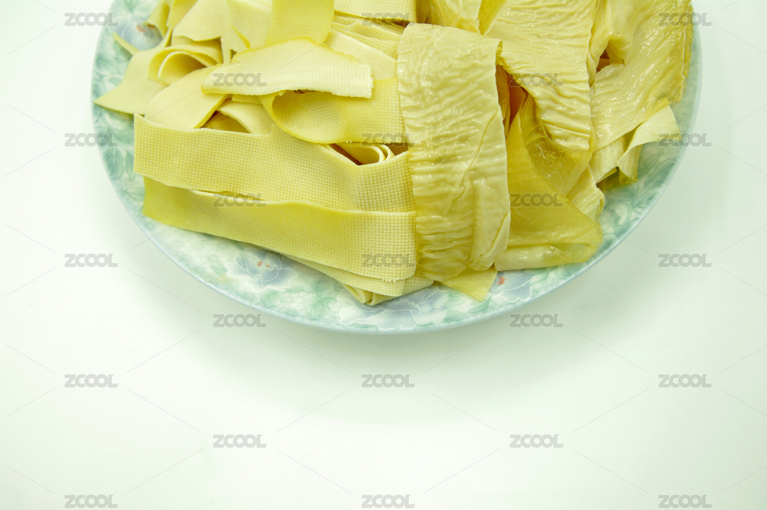 木板背景上滿滿一盤(pán)豆腐皮