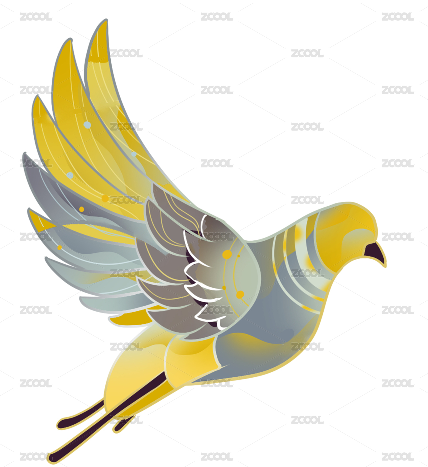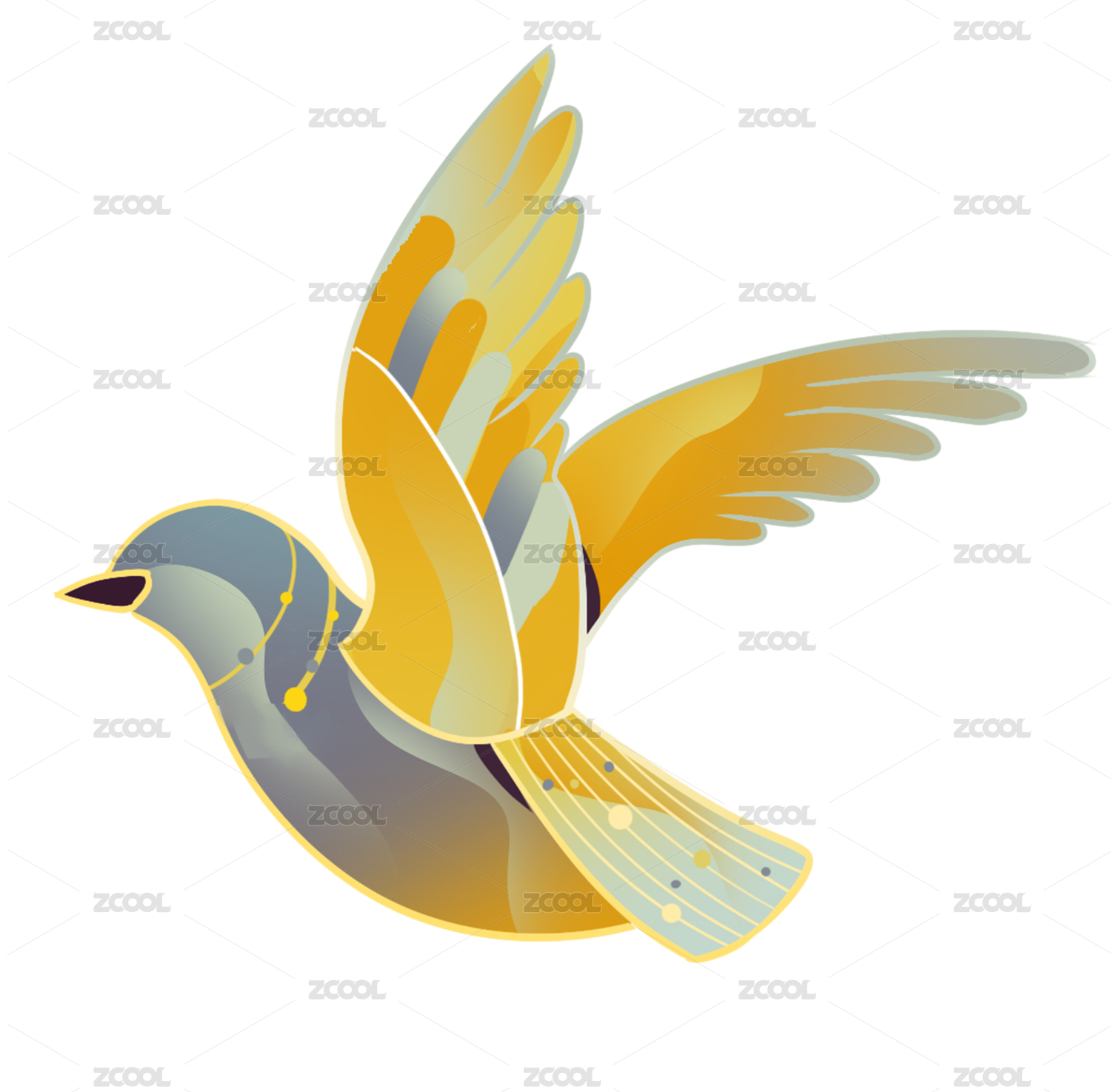 黃色漸變鳥類-扁平畫