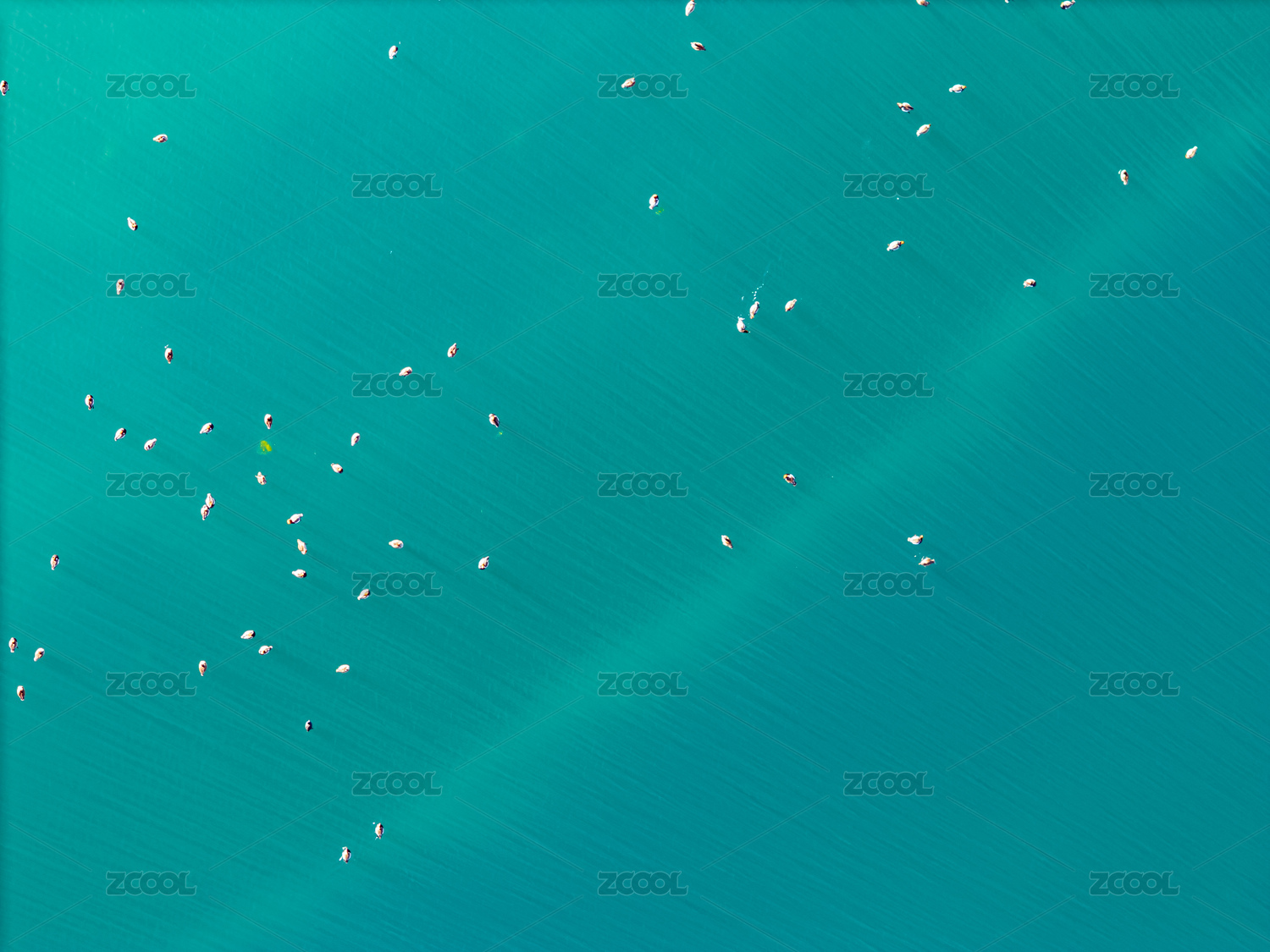 陽光下綠色湖面上的鳥類航拍