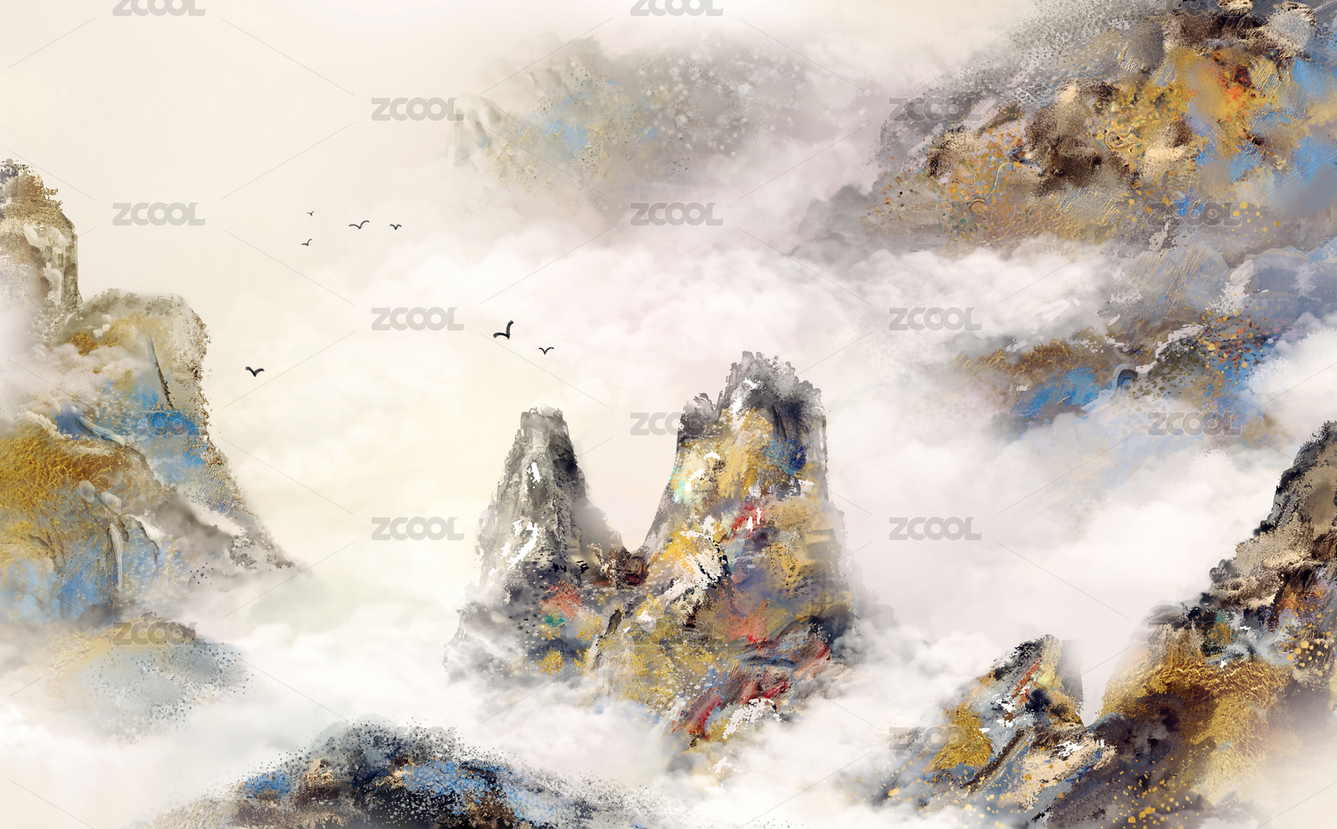 手繪大尺寸中國風(fēng)意境水墨山水風(fēng)景畫 新中式抽象山水油畫