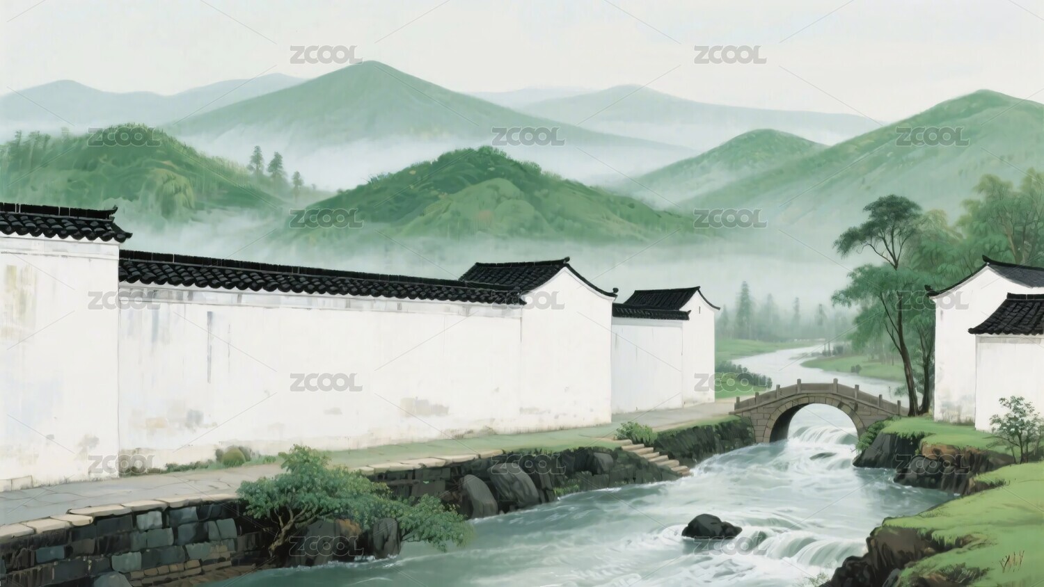 水墨鄉(xiāng)村山水圖