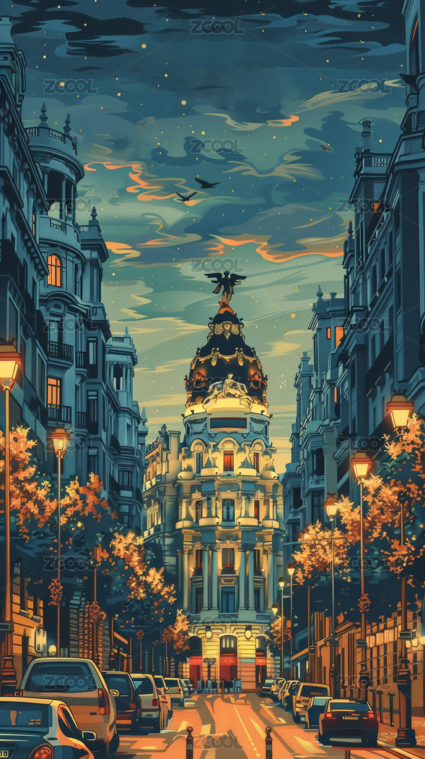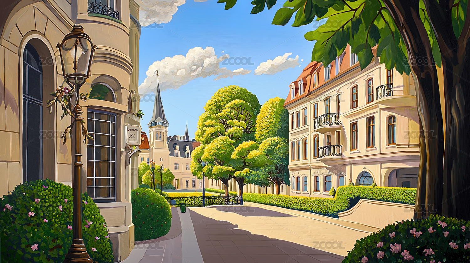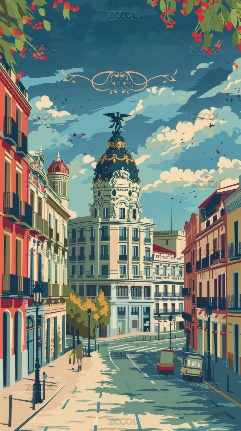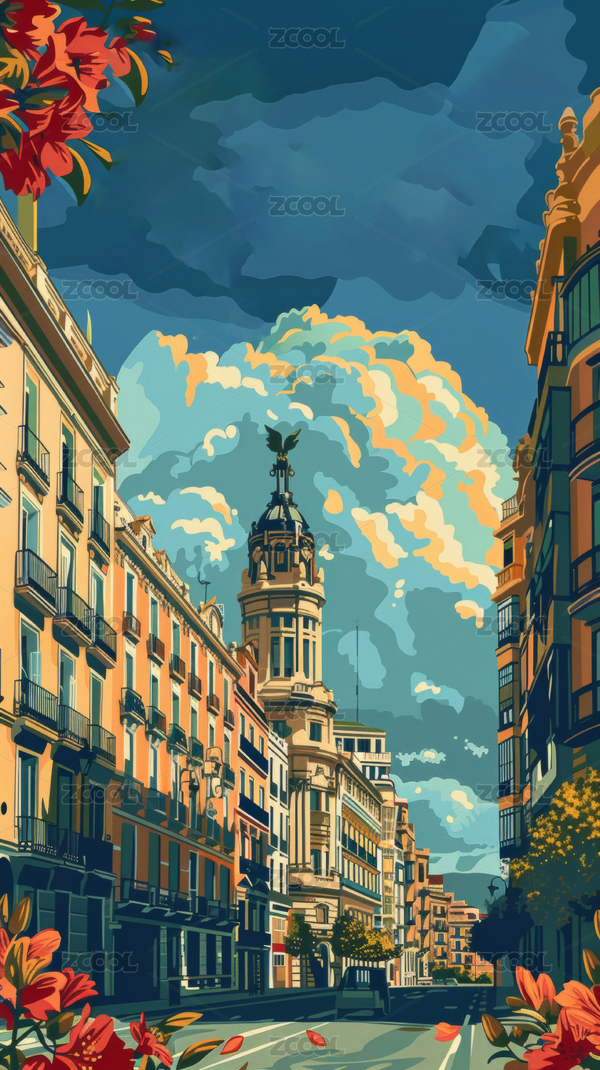 歐洲街道風景油畫風格背景