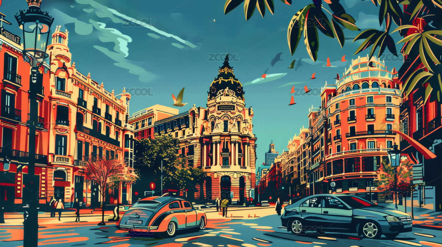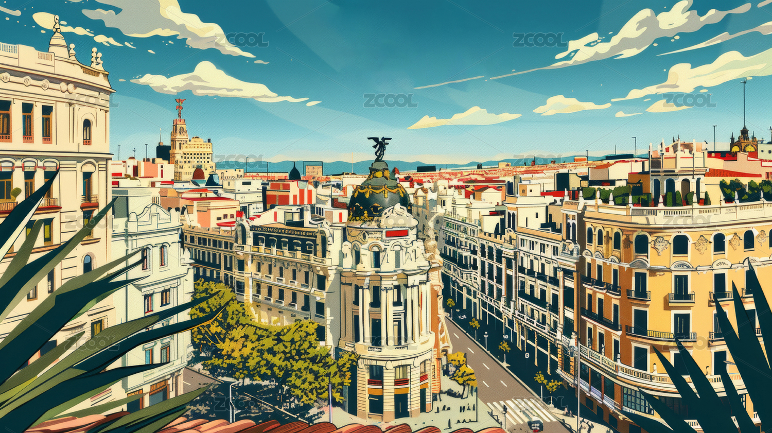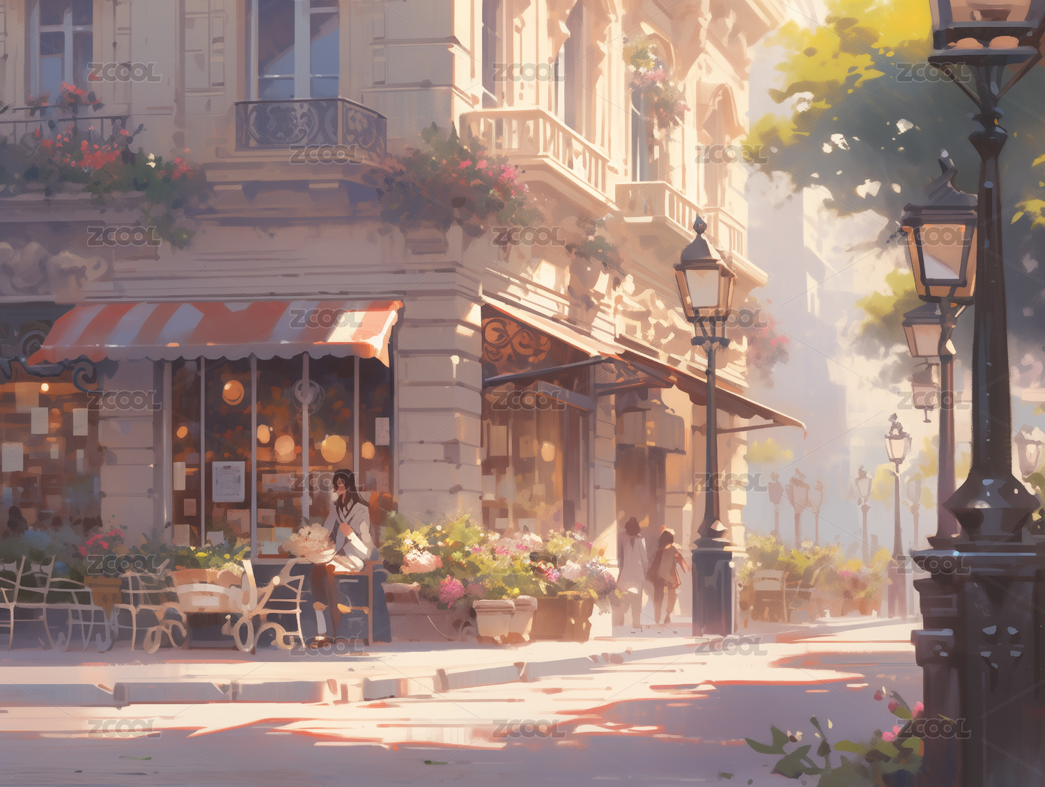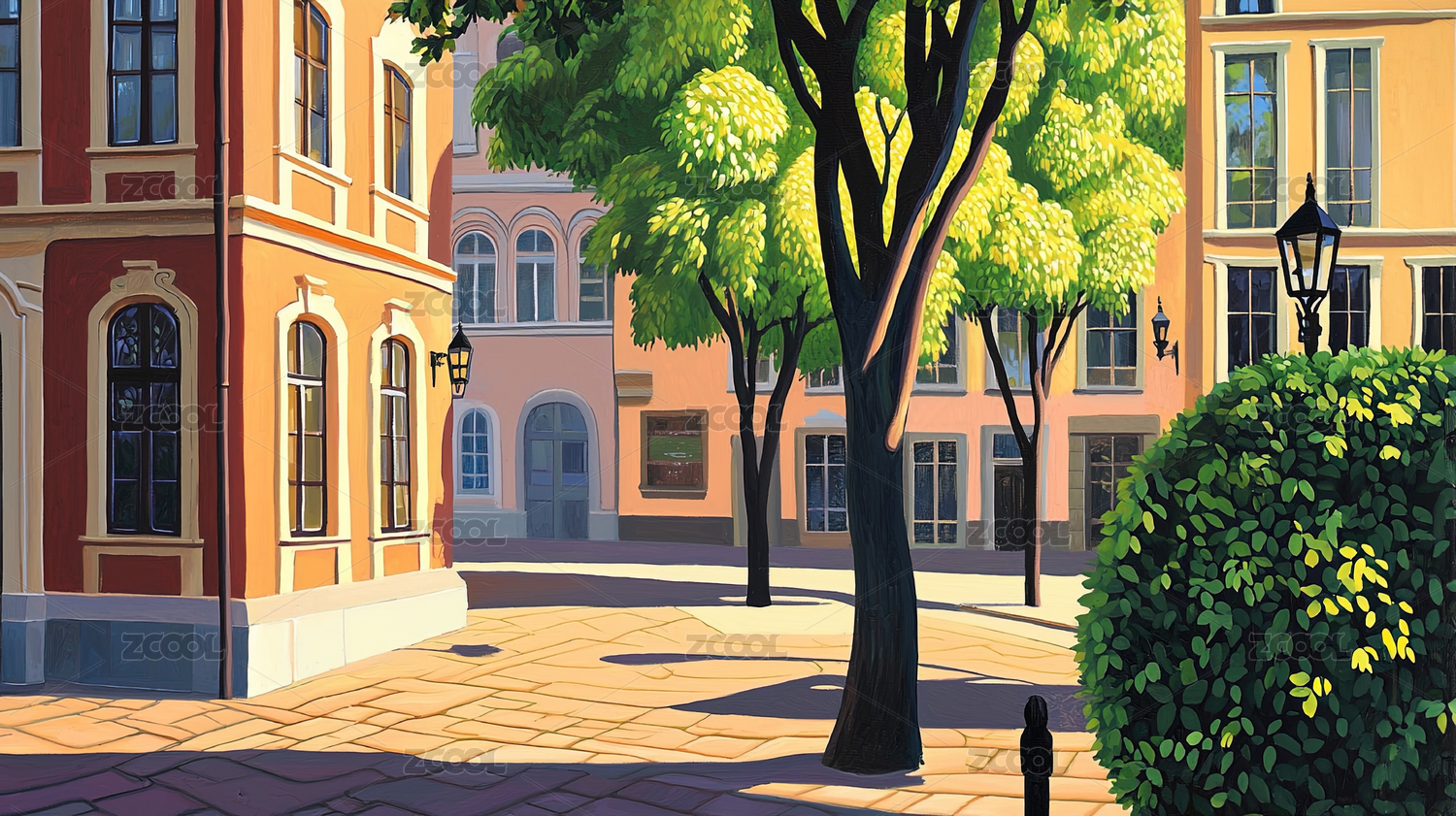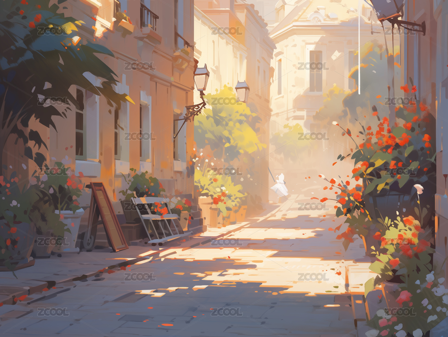歐洲街道風景油畫風格背景