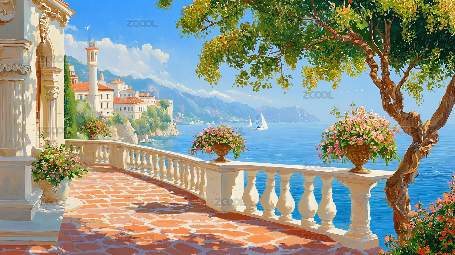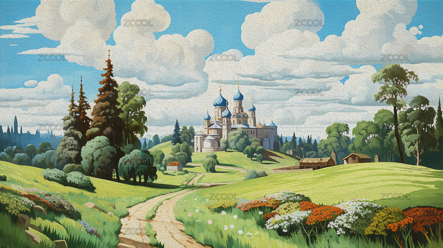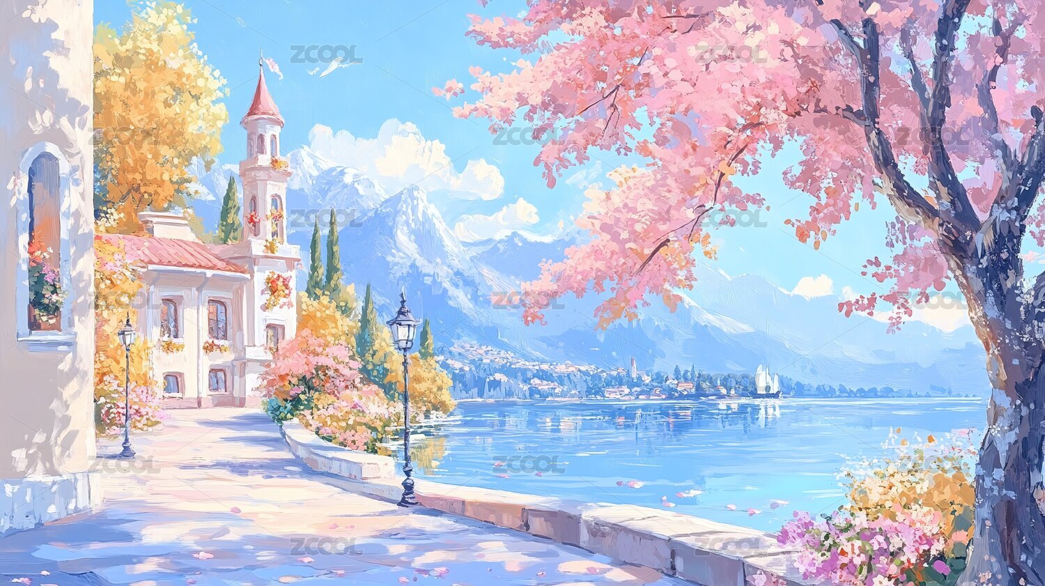 歐洲油畫風格風景背景圖片