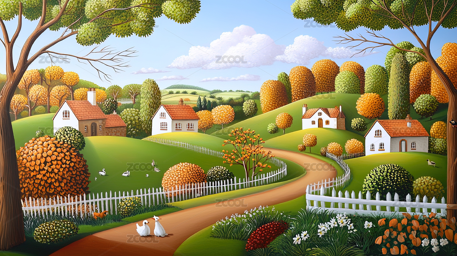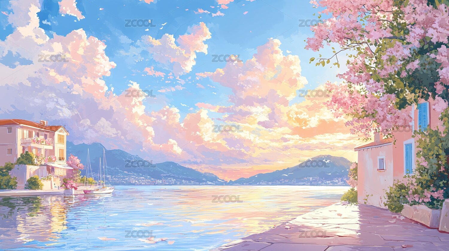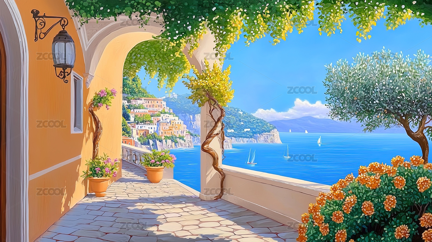 歐洲油畫風格風景背景圖片