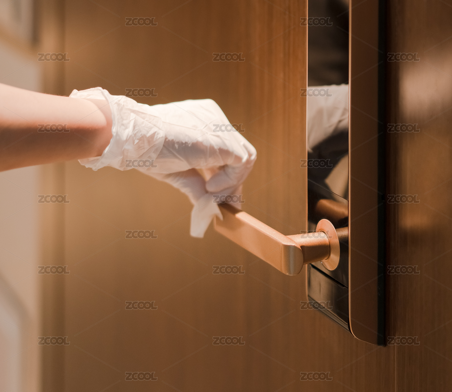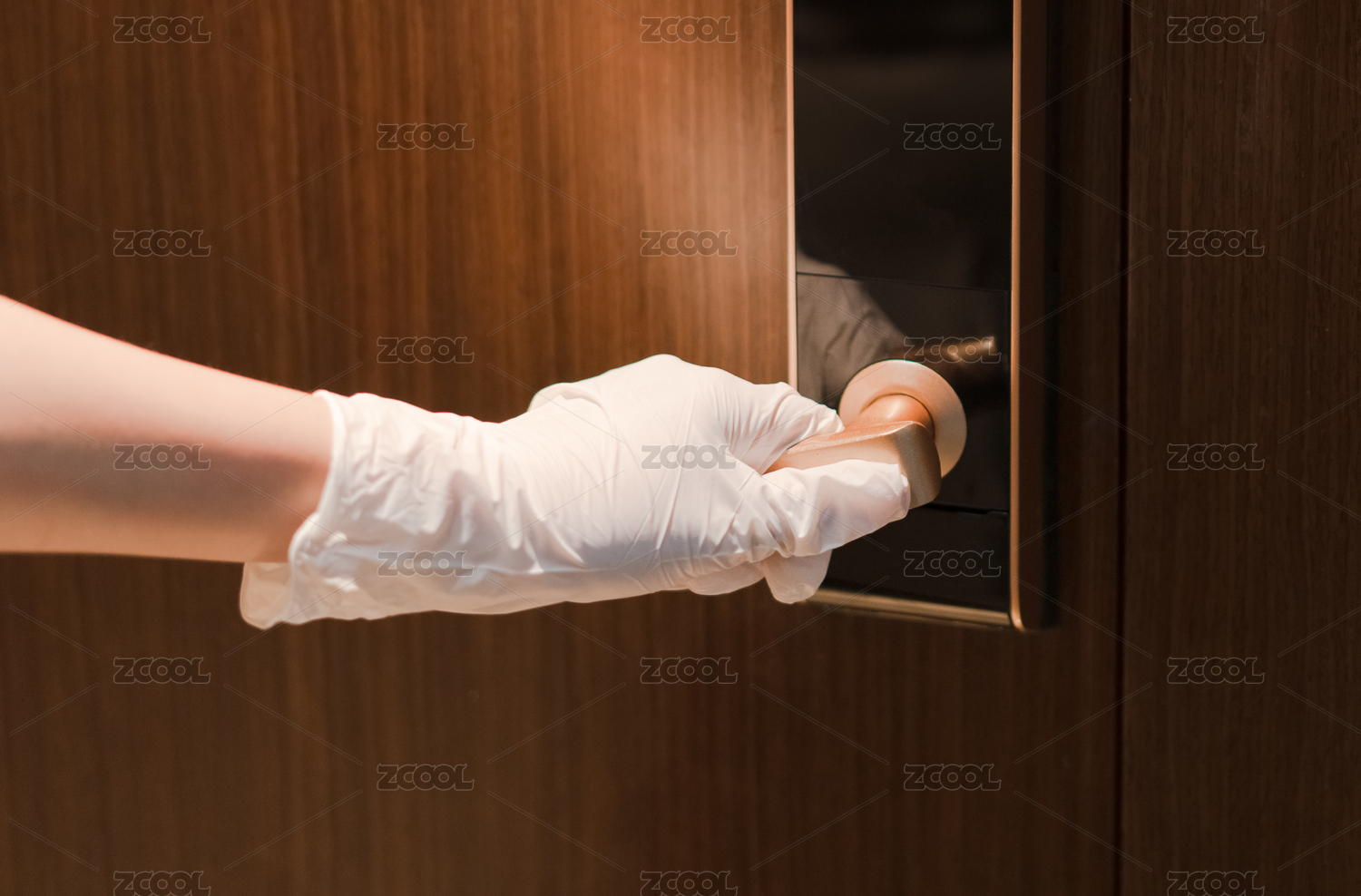 戴著手套的手在開(kāi)門(mén)