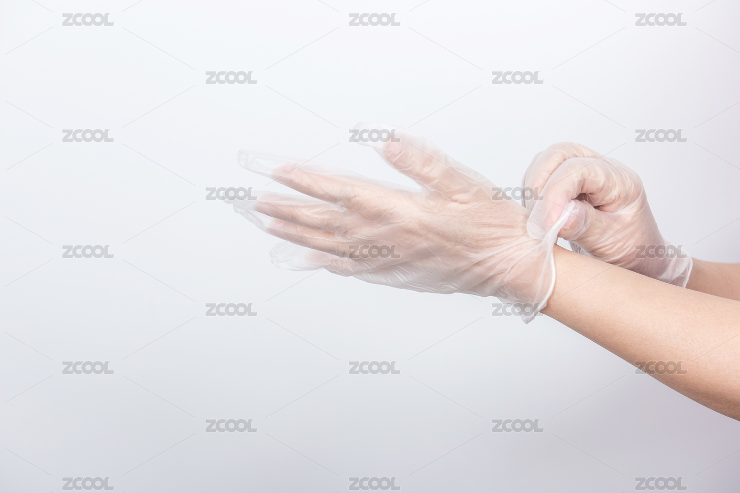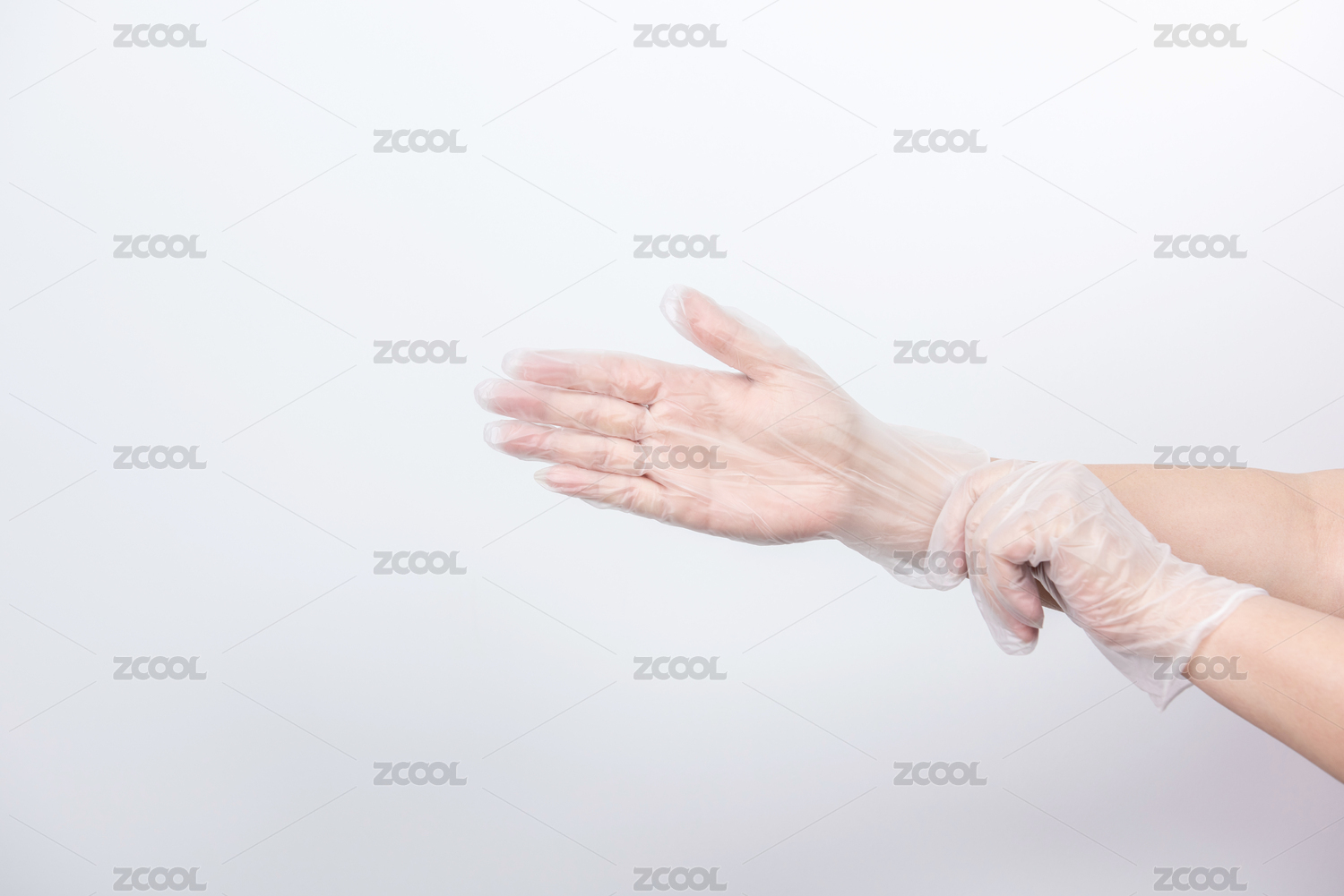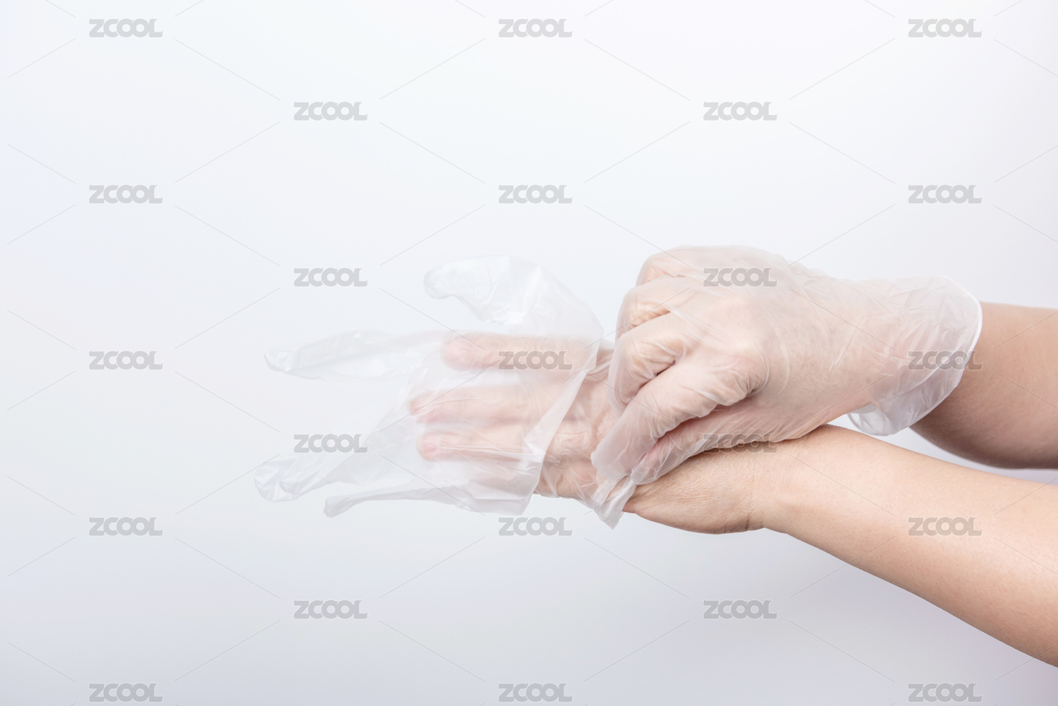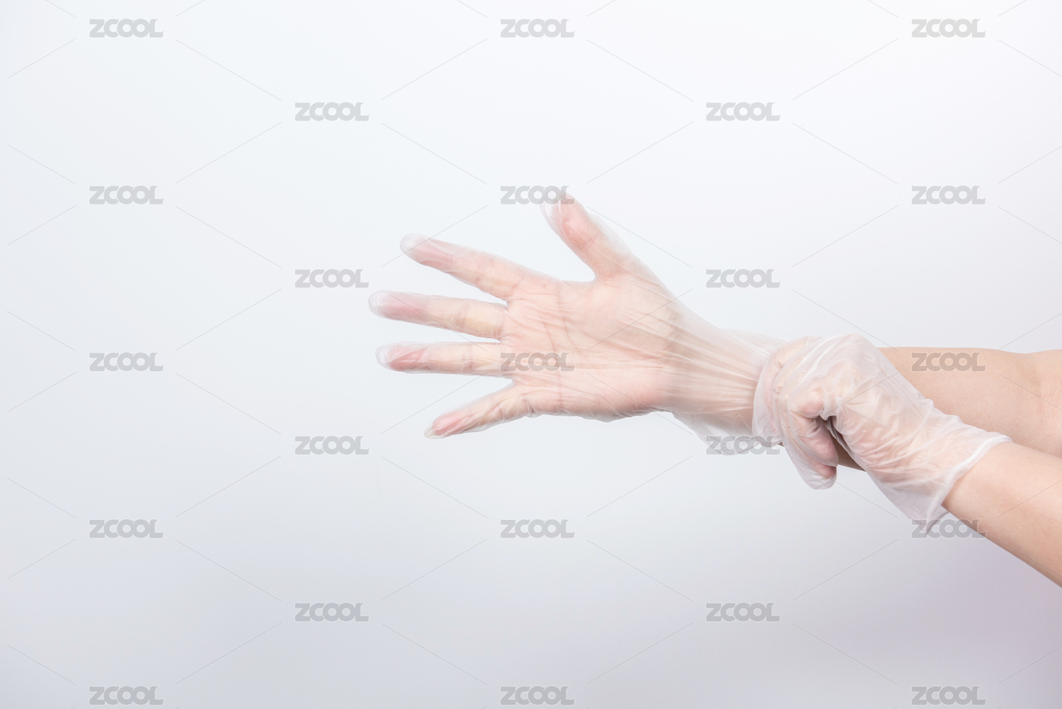 一雙正在戴手套的手