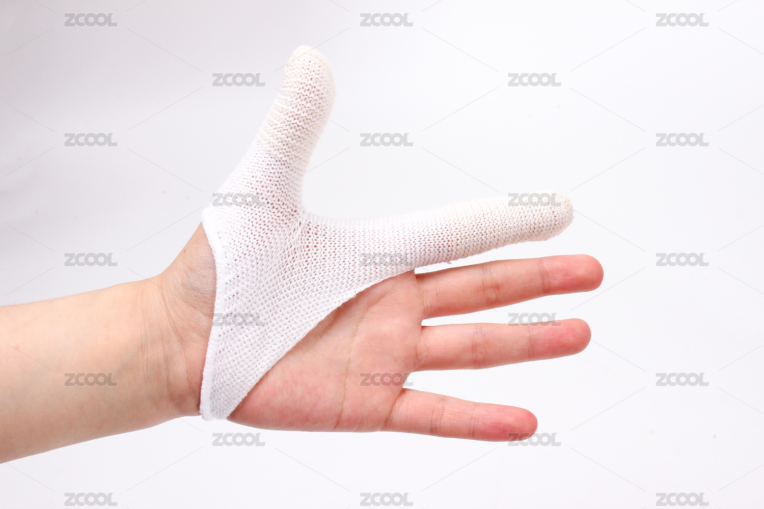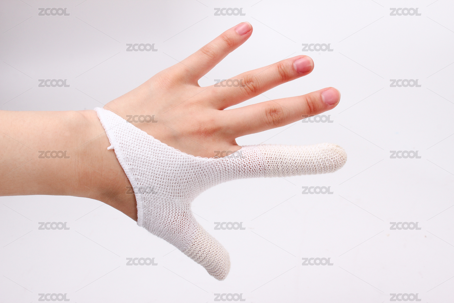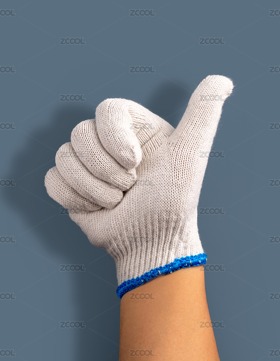 帶著線(xiàn)手套的手伸出大拇指