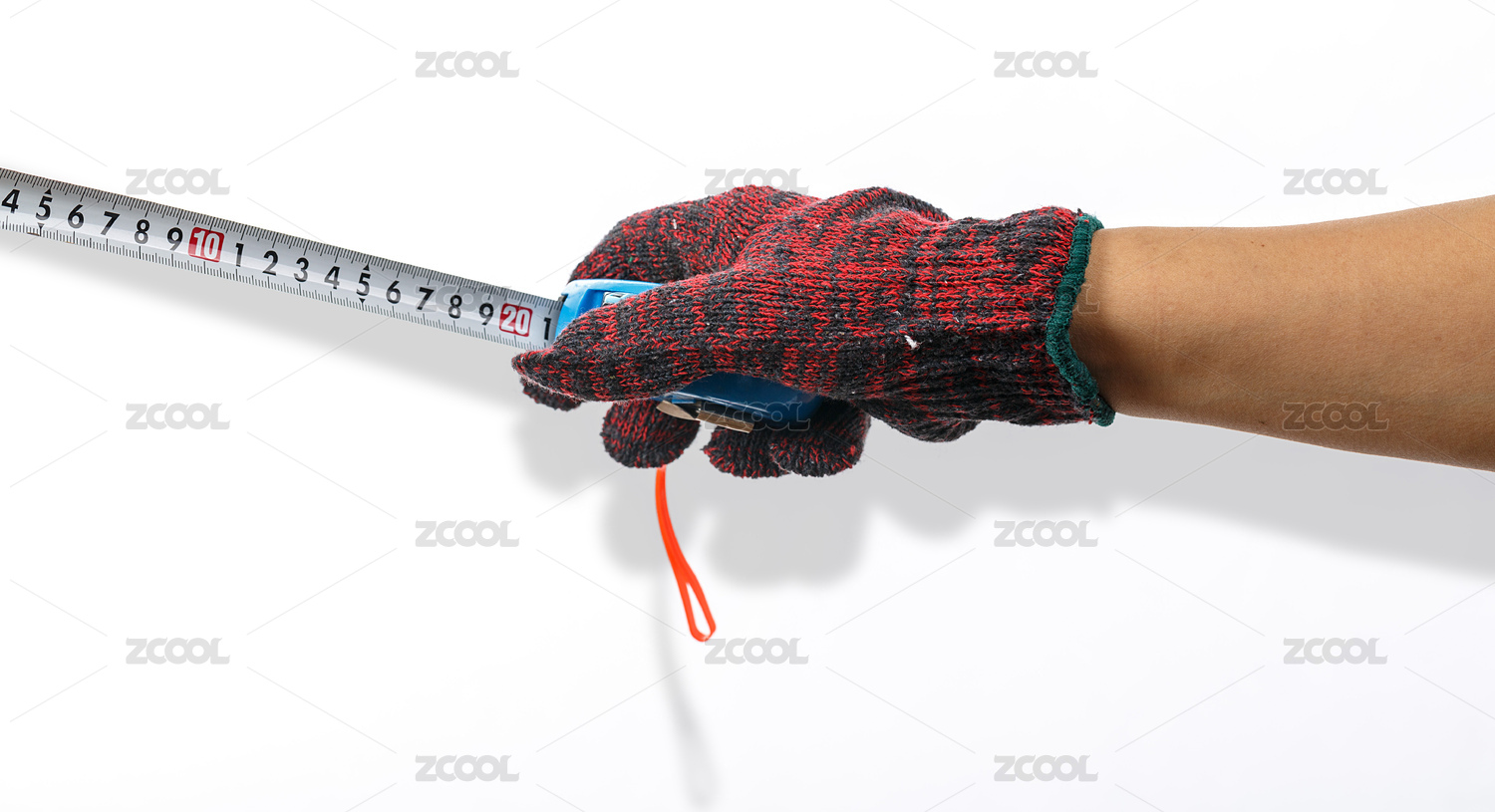 帶著手套手拿卷尺做測(cè)量的動(dòng)作