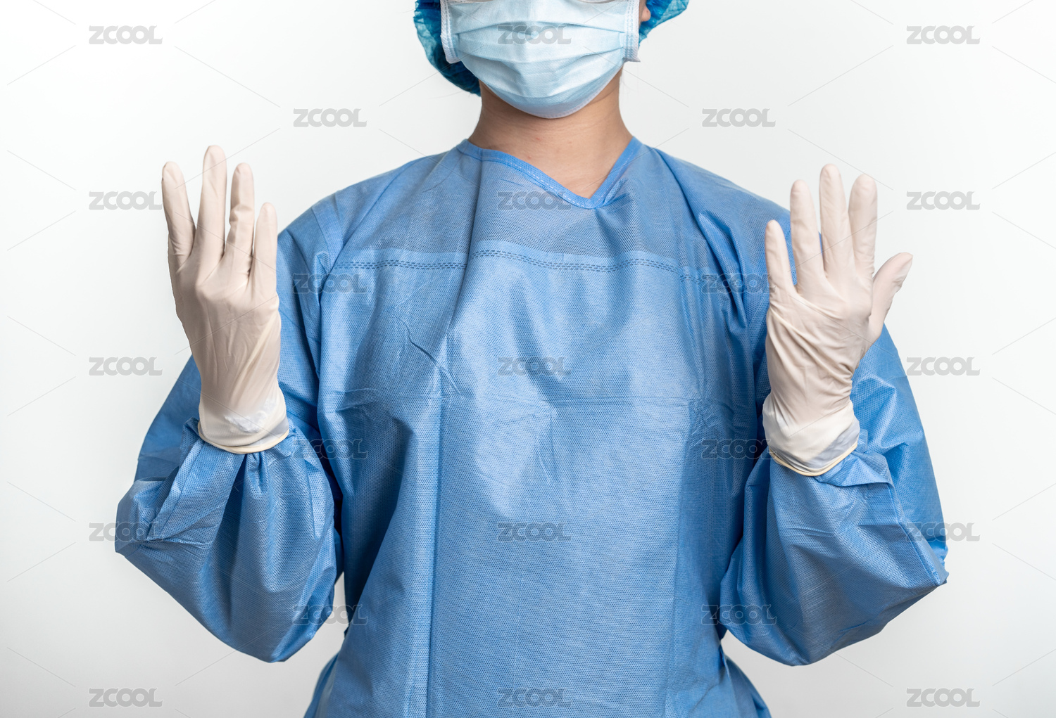 身穿隔離衣的醫(yī)務(wù)人員戴著手套