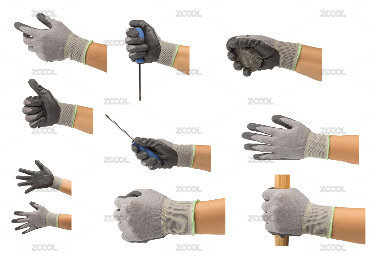 戴著灰色勞動(dòng)手套工作的手