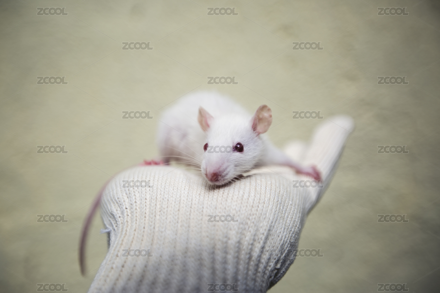 一只小白鼠在白色手套上