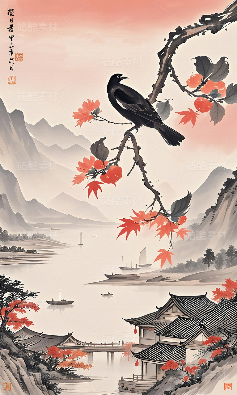 水墨花鳥古風(fēng)畫插畫花鳥裝飾畫工筆花鳥新中式花鳥畫