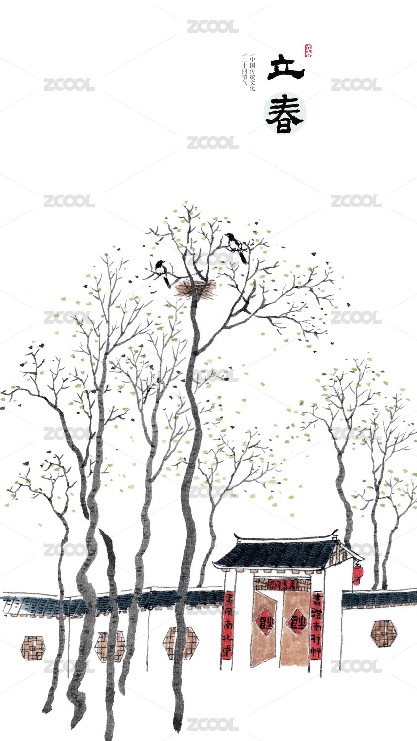 唯美手繪花鳥畫二十四節(jié)氣插畫立春