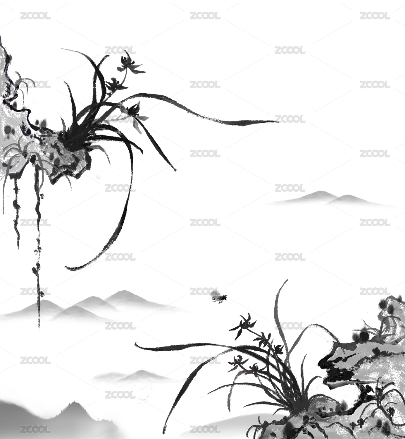 石頭蘭花國畫裝飾畫