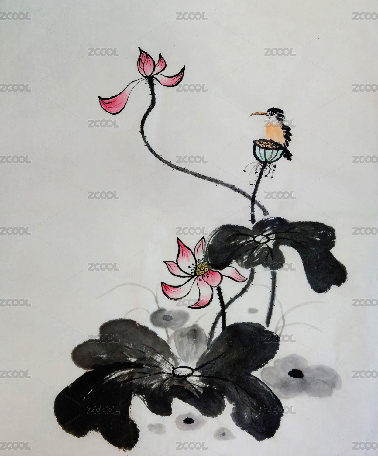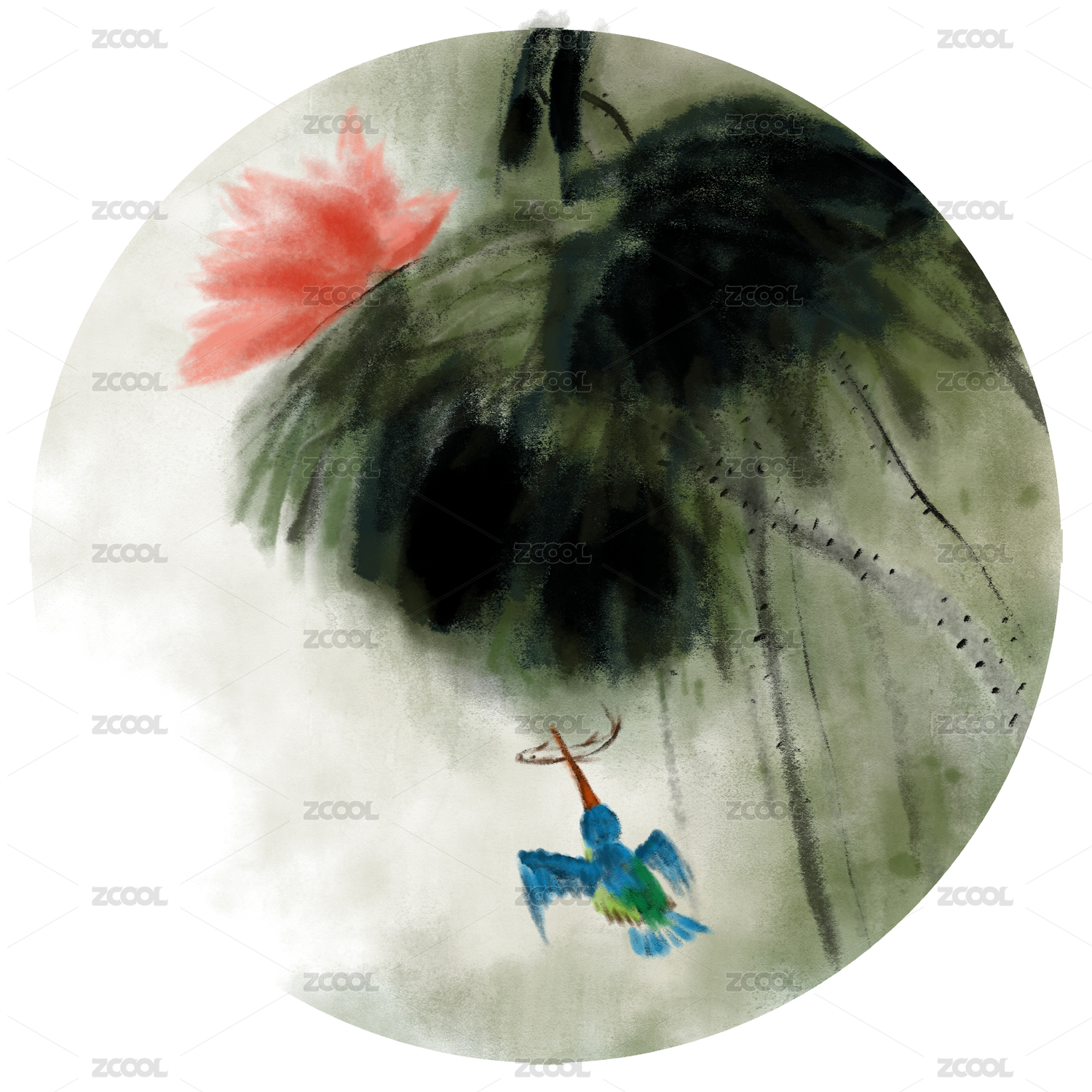 中國風(fēng)插畫水墨畫花鳥畫手繪荷花