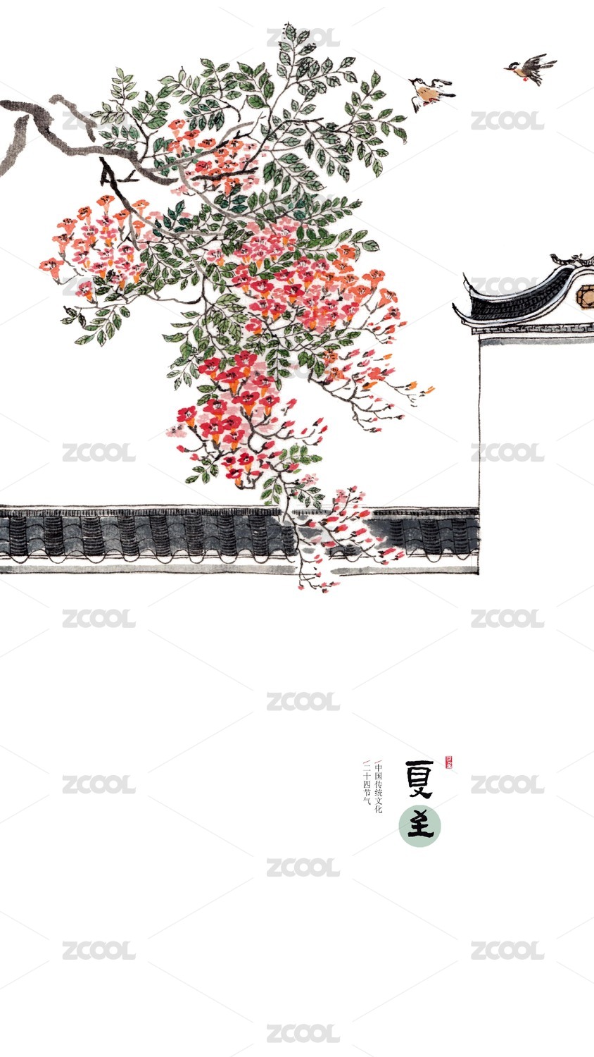 唯美手繪花鳥畫二十四節(jié)氣插畫夏至