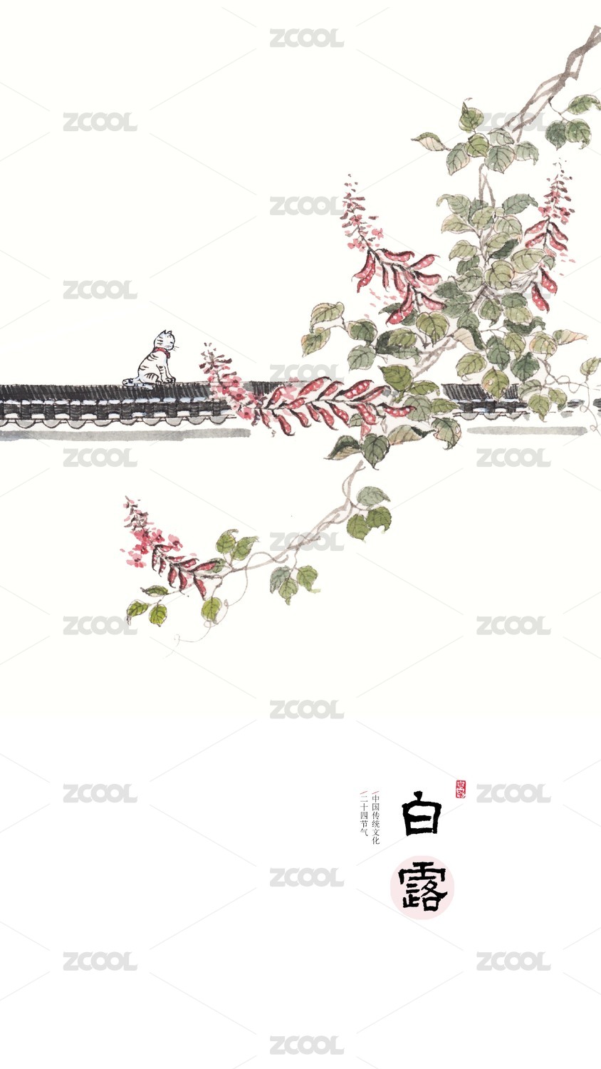 唯美手繪花鳥畫二十四節(jié)氣插畫白露