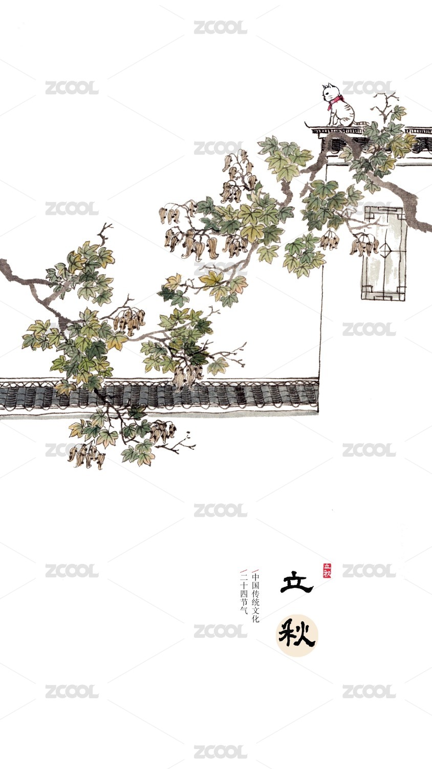 唯美手繪花鳥畫二十四節(jié)氣插畫立秋