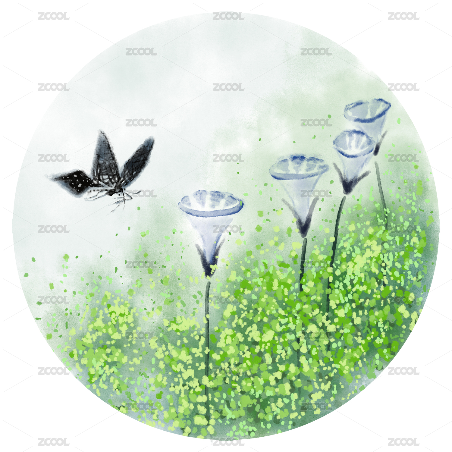 中國風(fēng)插畫水墨畫花鳥畫手繪牽?;?/div>