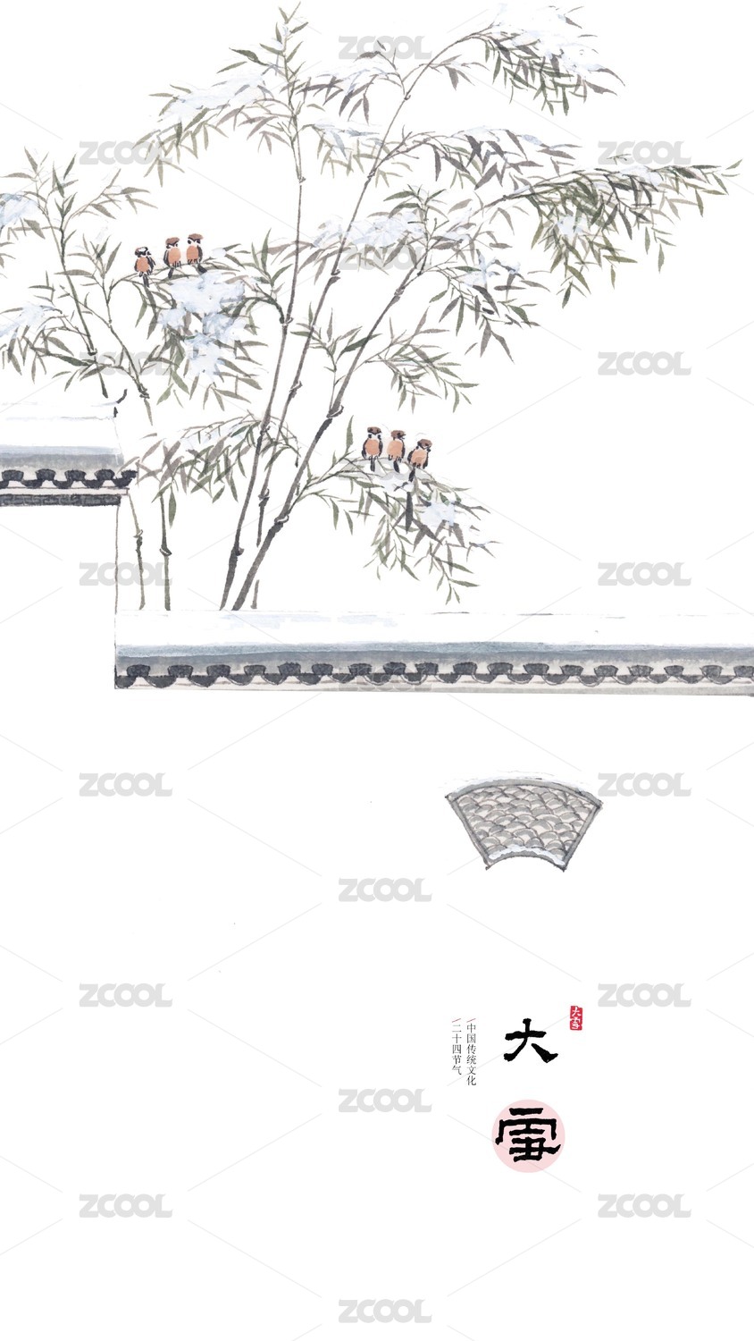 唯美手繪花鳥畫二十四節(jié)氣插畫大雪