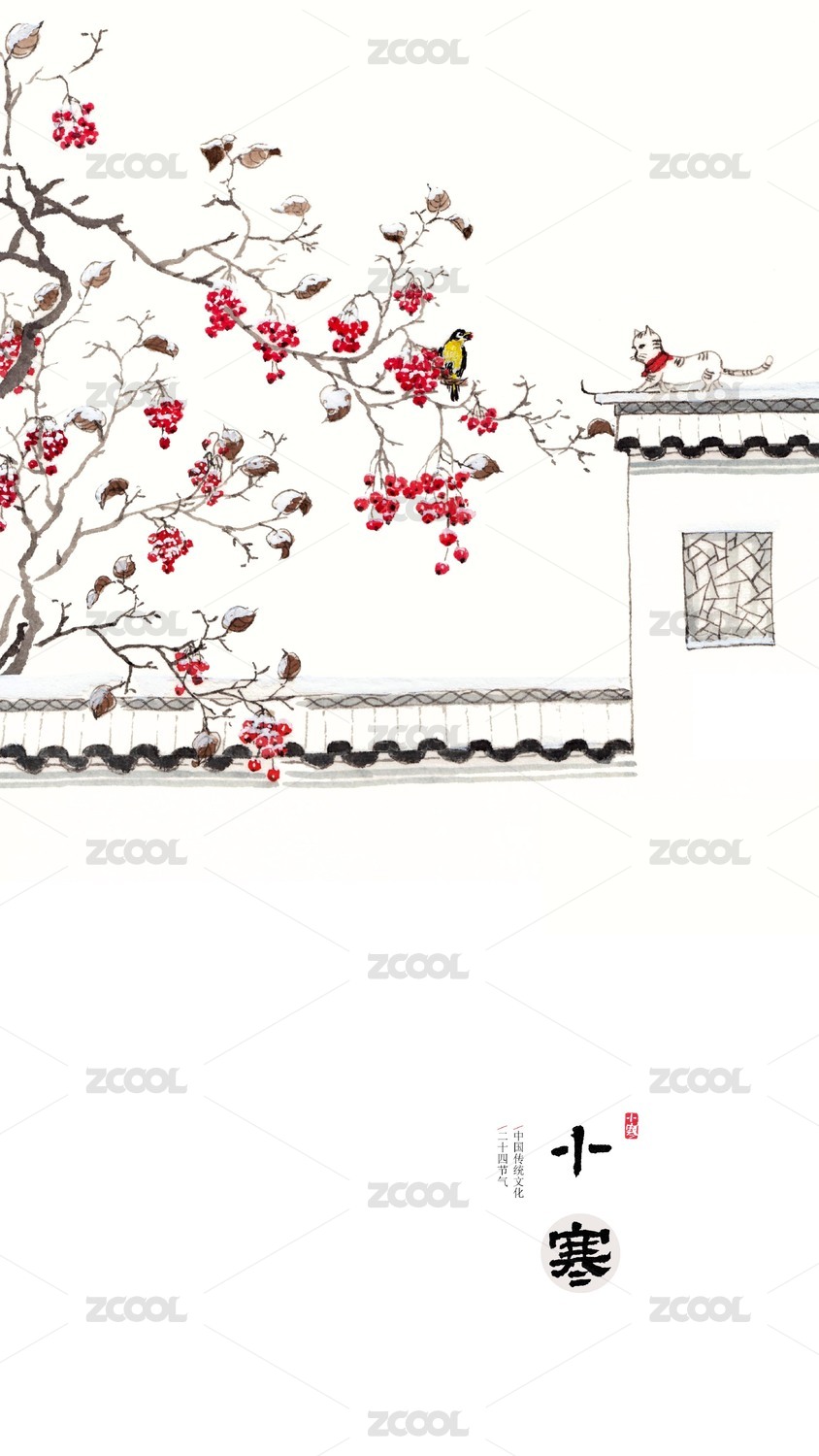 唯美手繪花鳥畫二十四節(jié)氣插畫小寒