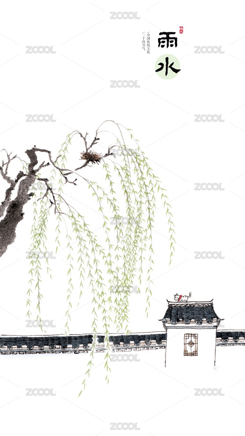 唯美手繪花鳥畫二十四節(jié)氣插畫雨水