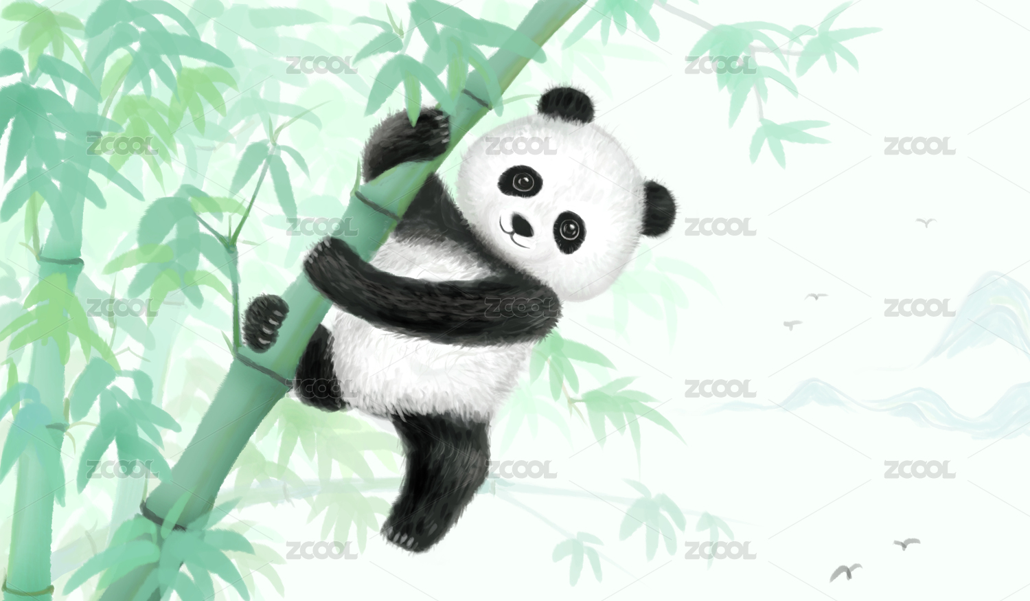熊貓竹子水墨畫
