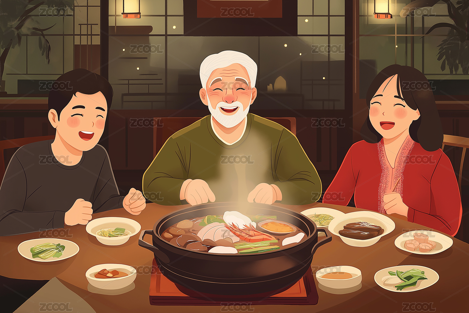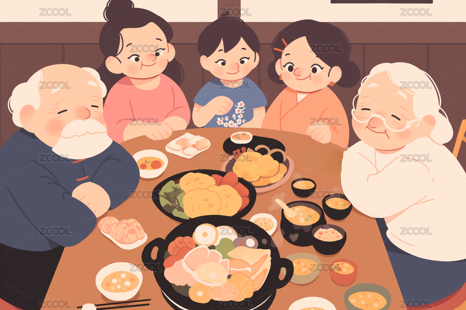【矢量插畫】老年聚餐場景,溫馨氛圍拉滿?