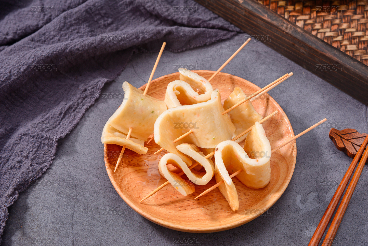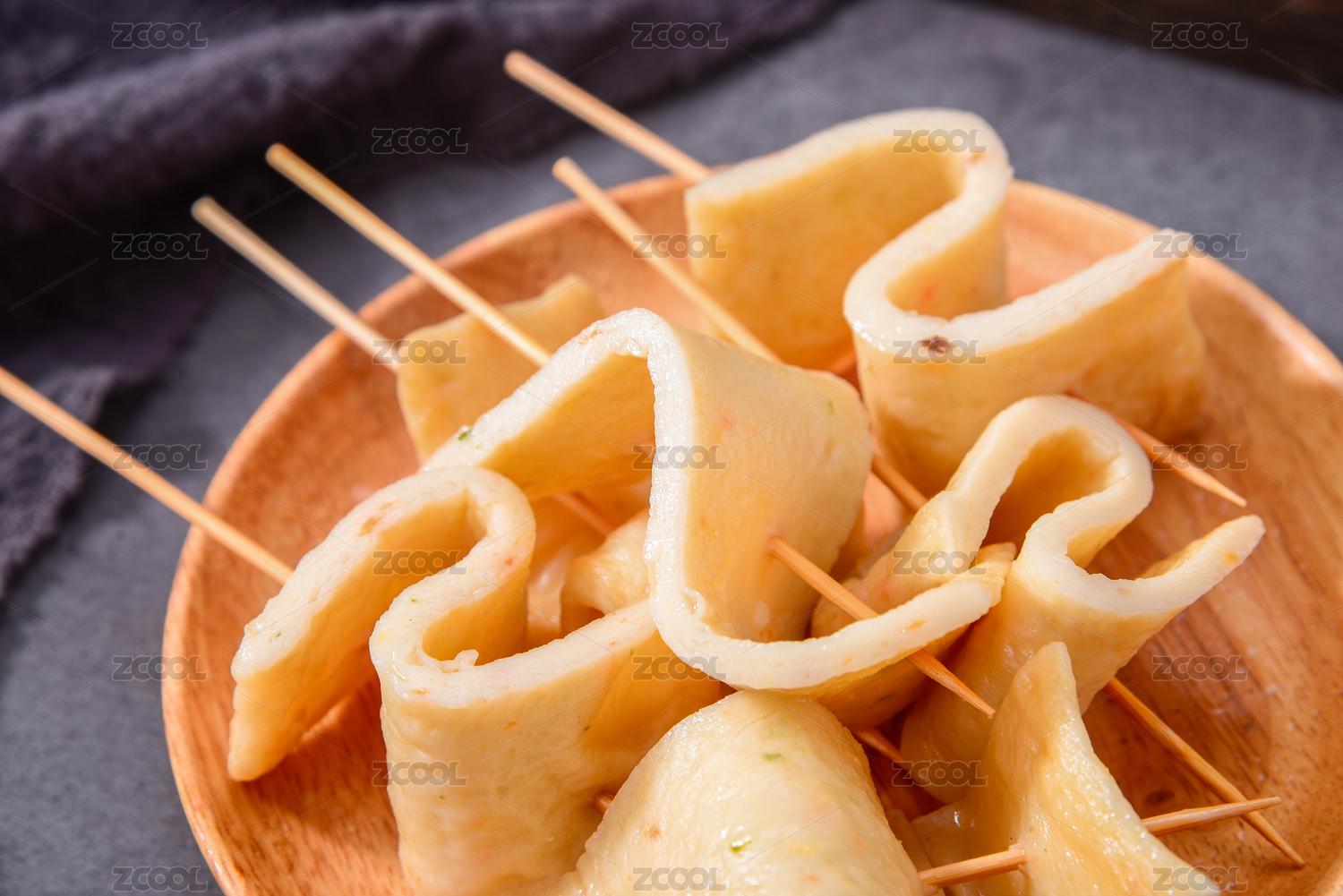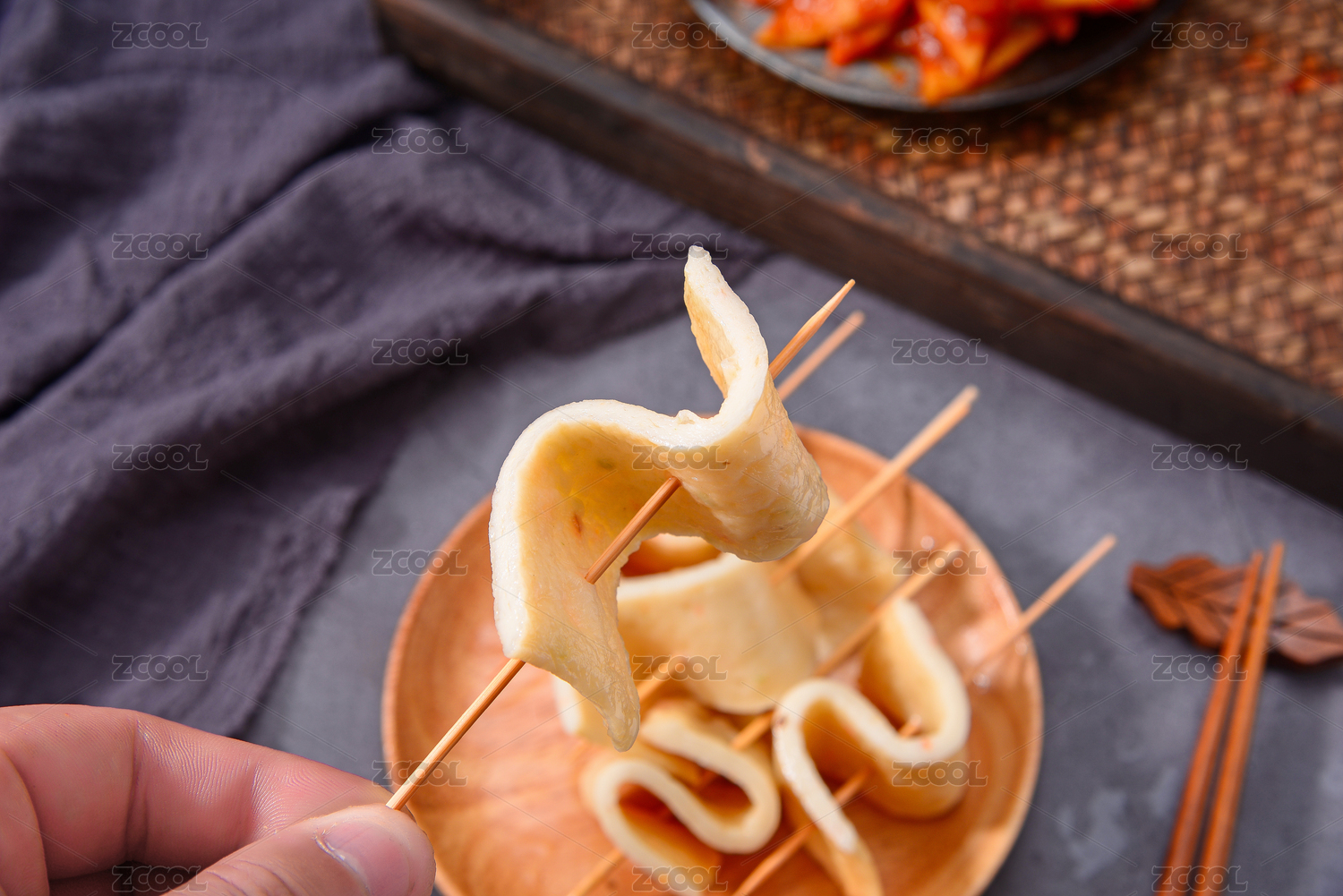 韓國(guó)傳統(tǒng)美食魚餅串的微距特寫