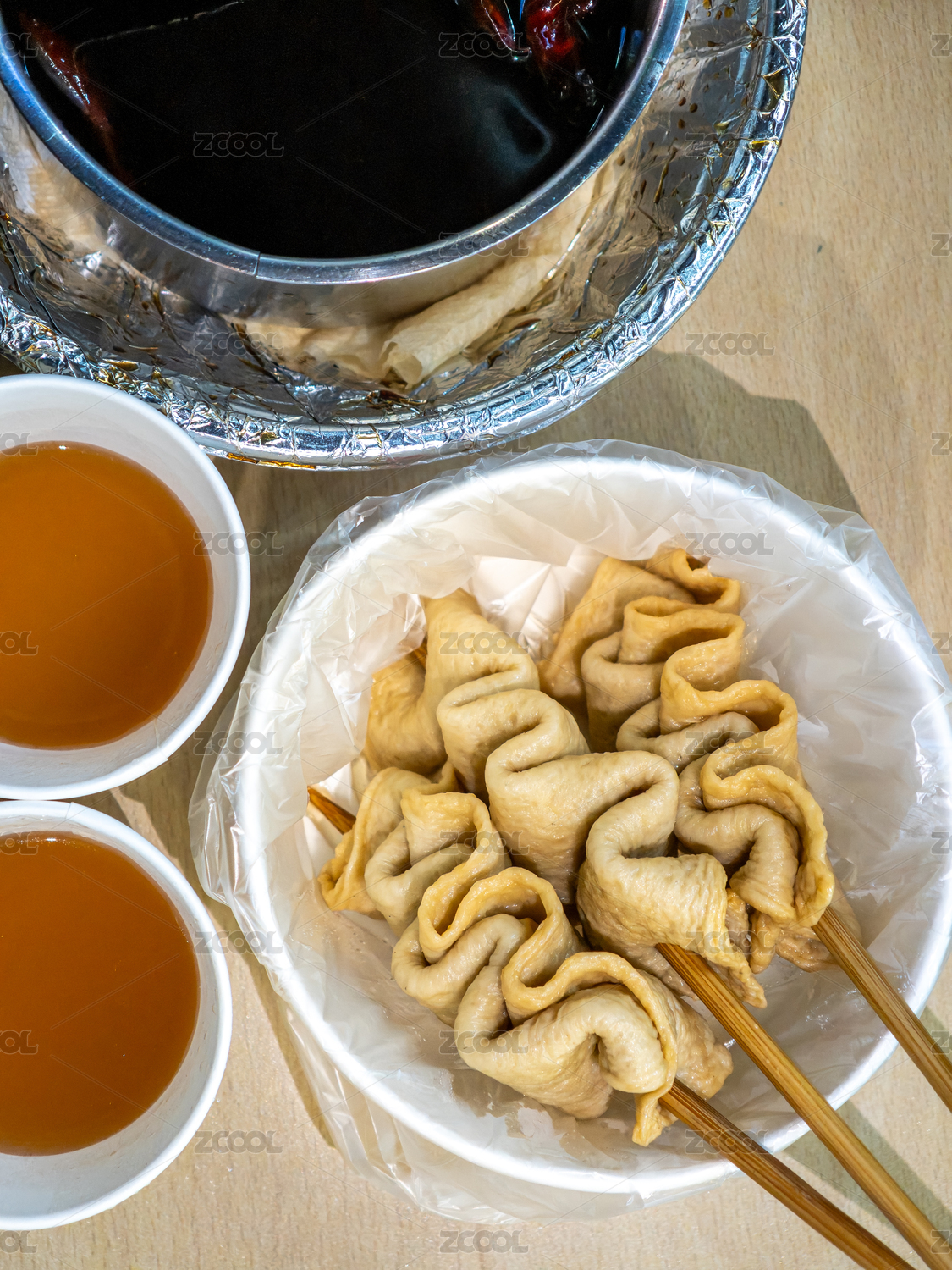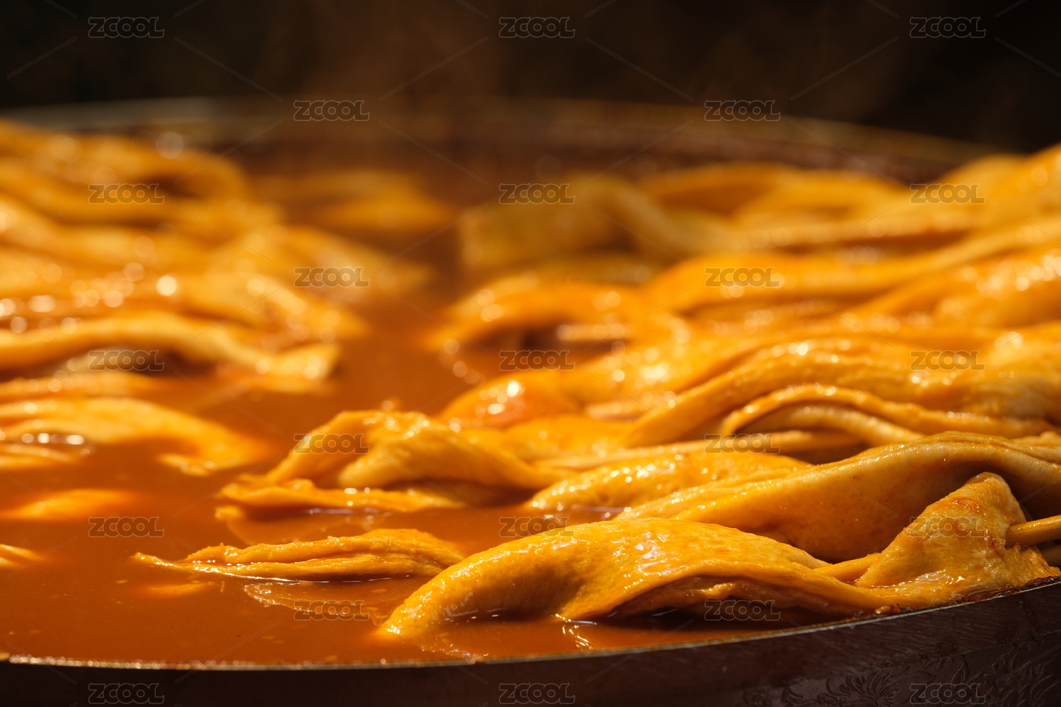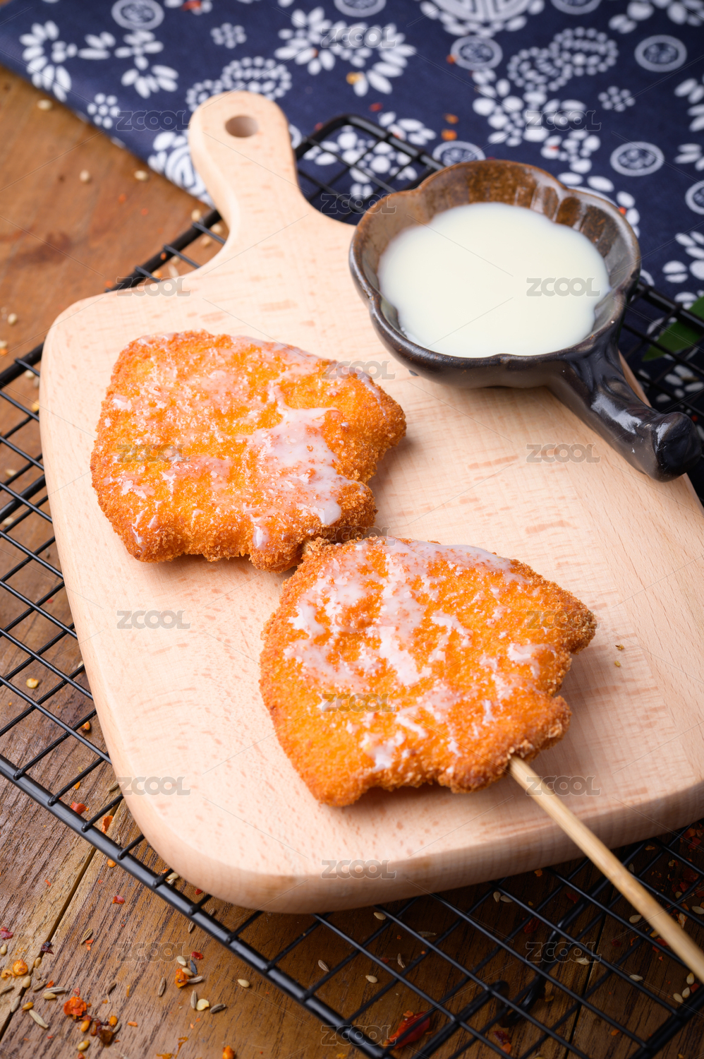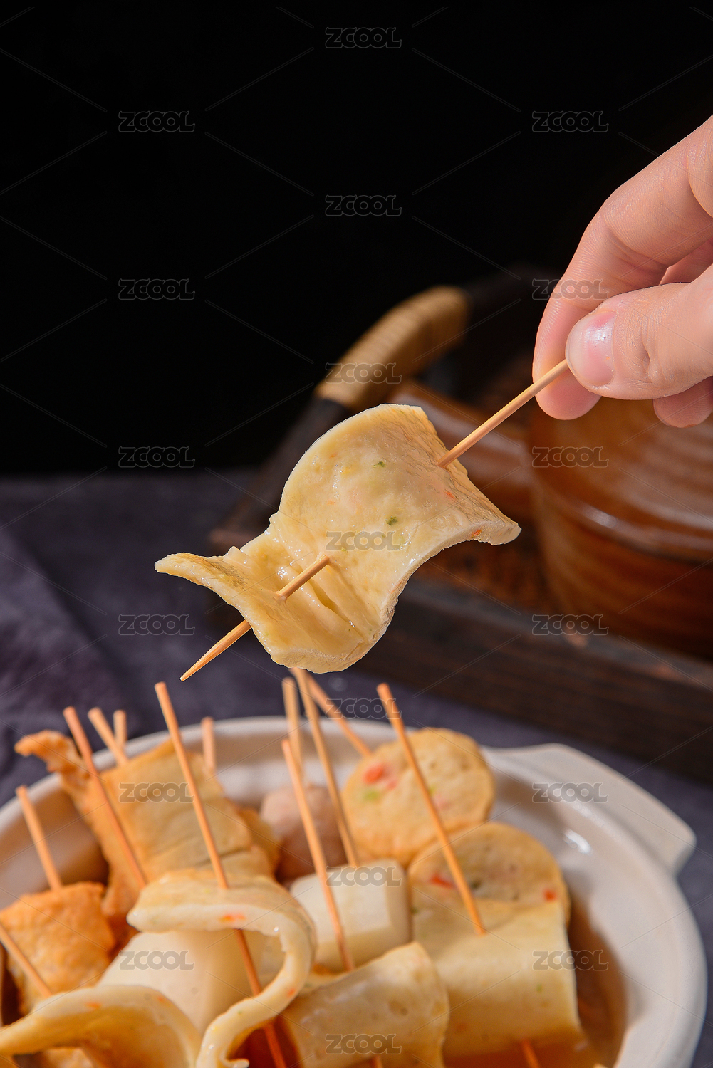 韓國(guó)傳統(tǒng)美食魚餅串的微距特寫