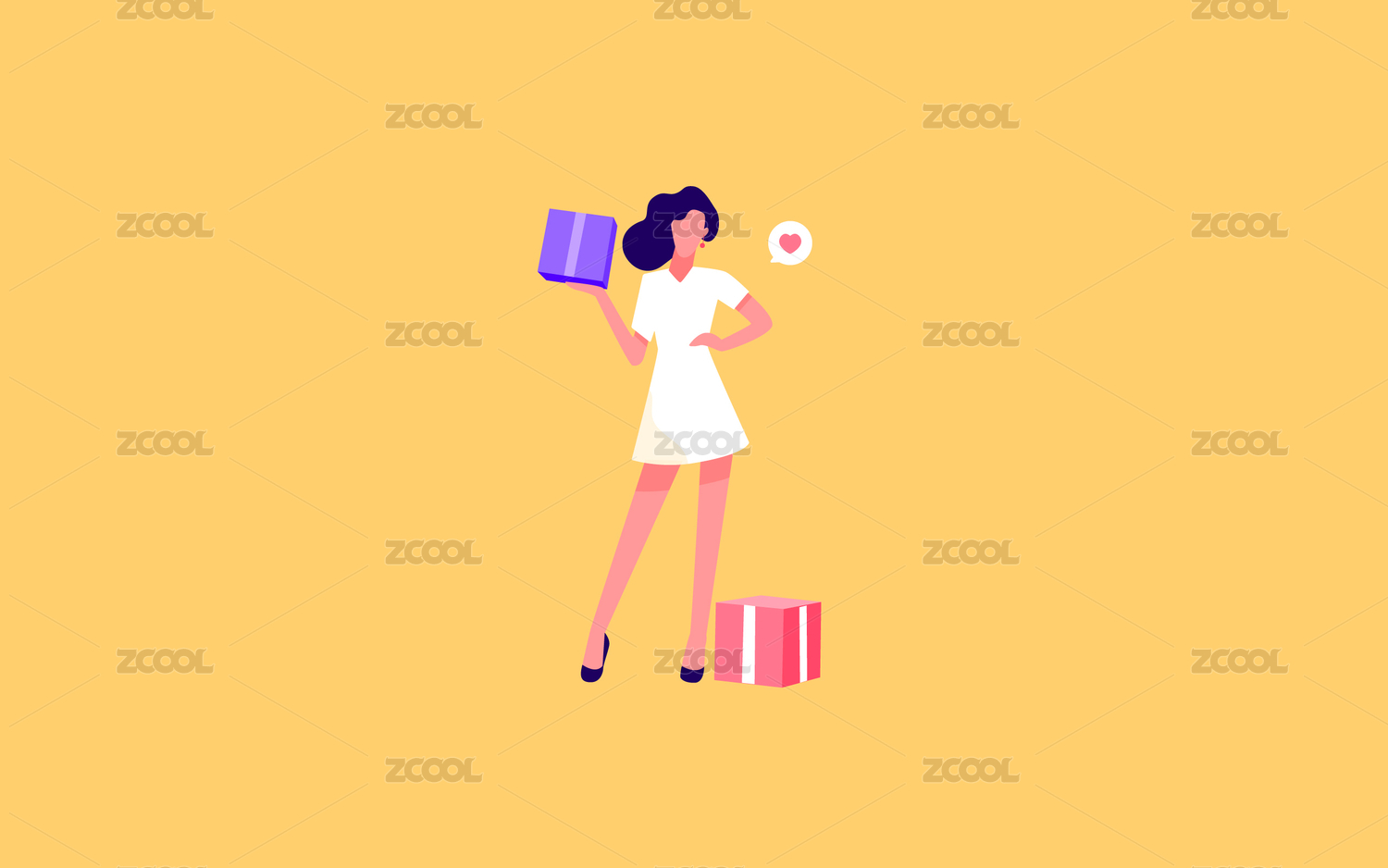 女人人物矢量素材女孩禮物素材