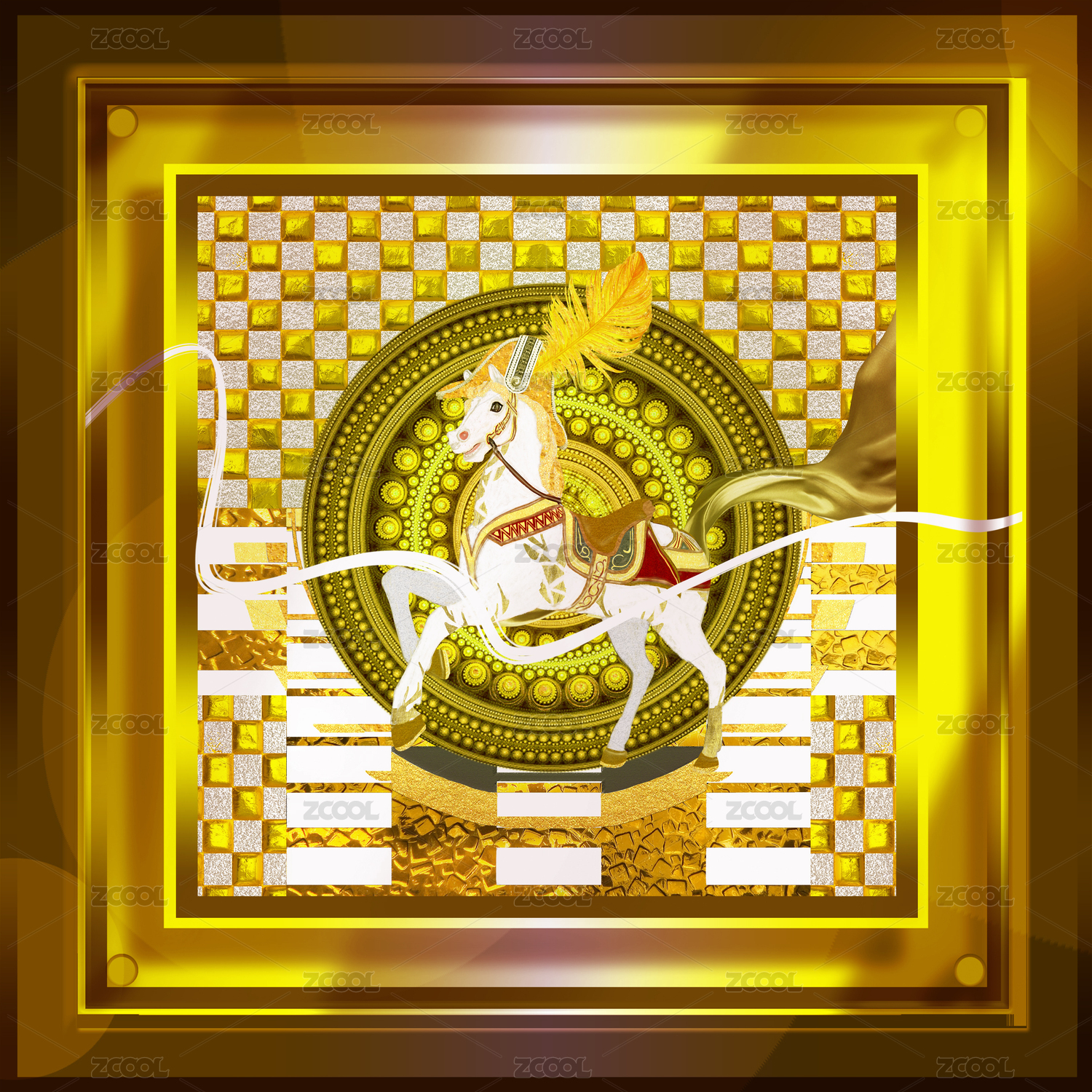 一只裝飾華麗的駿馬幾何抽象背景輕奢裝飾畫