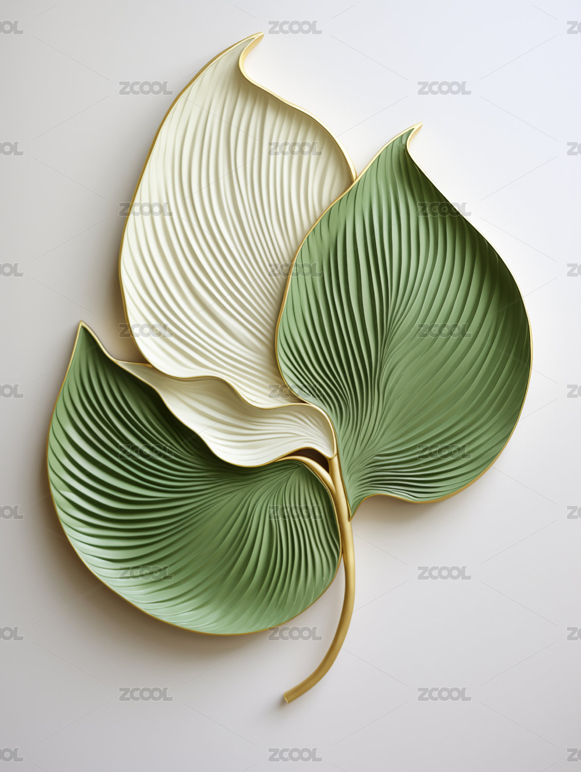輕奢裝飾畫金色綠色葉子形狀抽象藝術(shù)