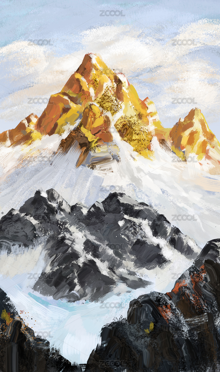 原創(chuàng)手繪輕奢抽象金山油畫玄關(guān)豎版裝飾畫