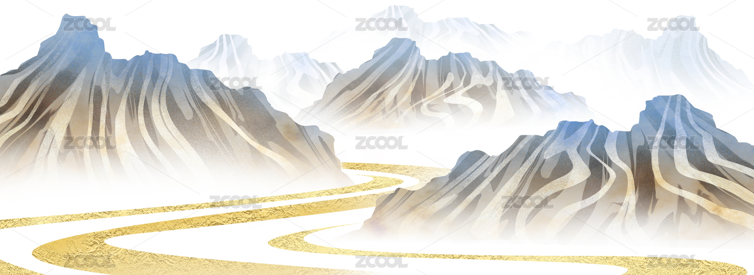 手繪輕奢新中式抽象金色山水藝術(shù)裝飾畫