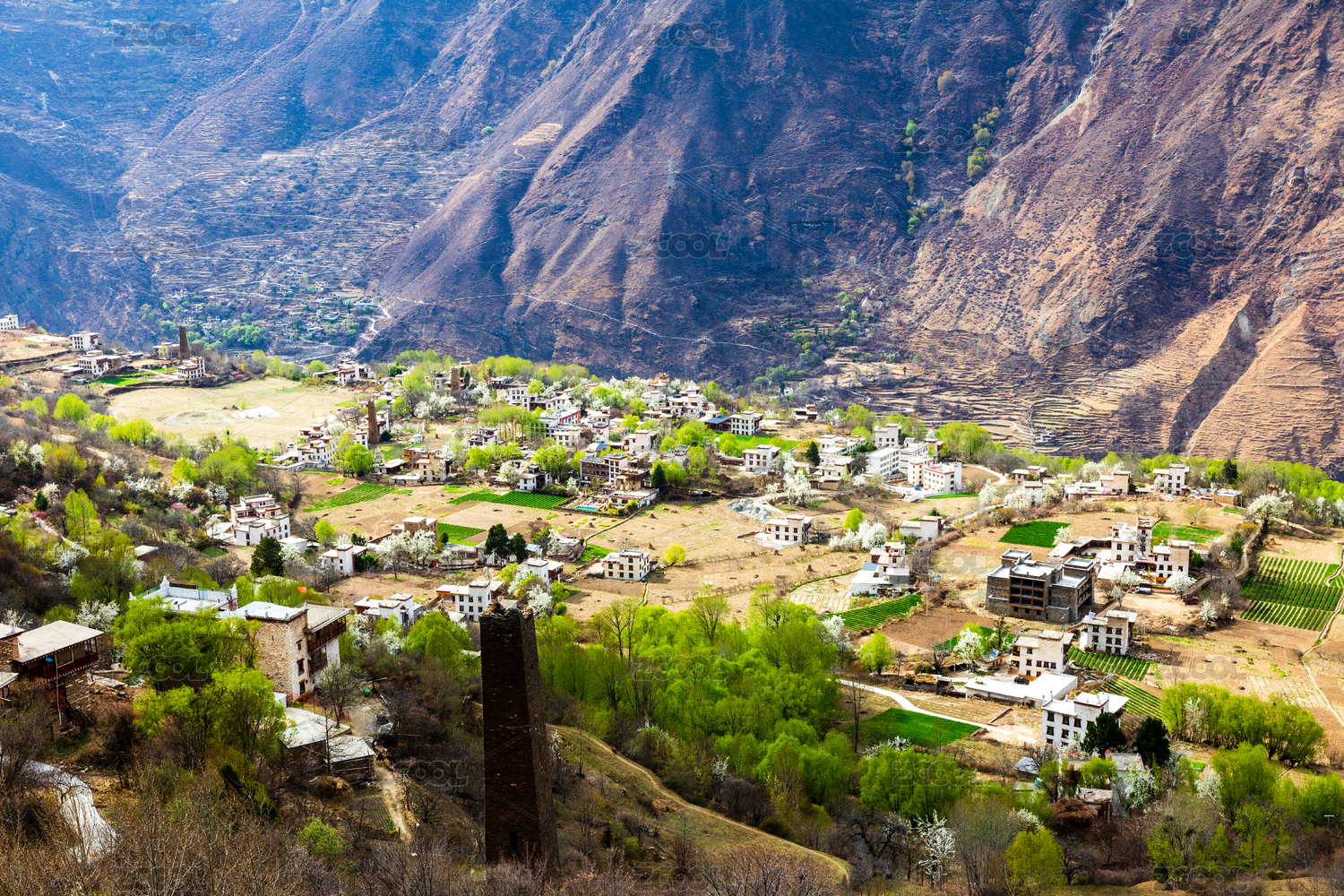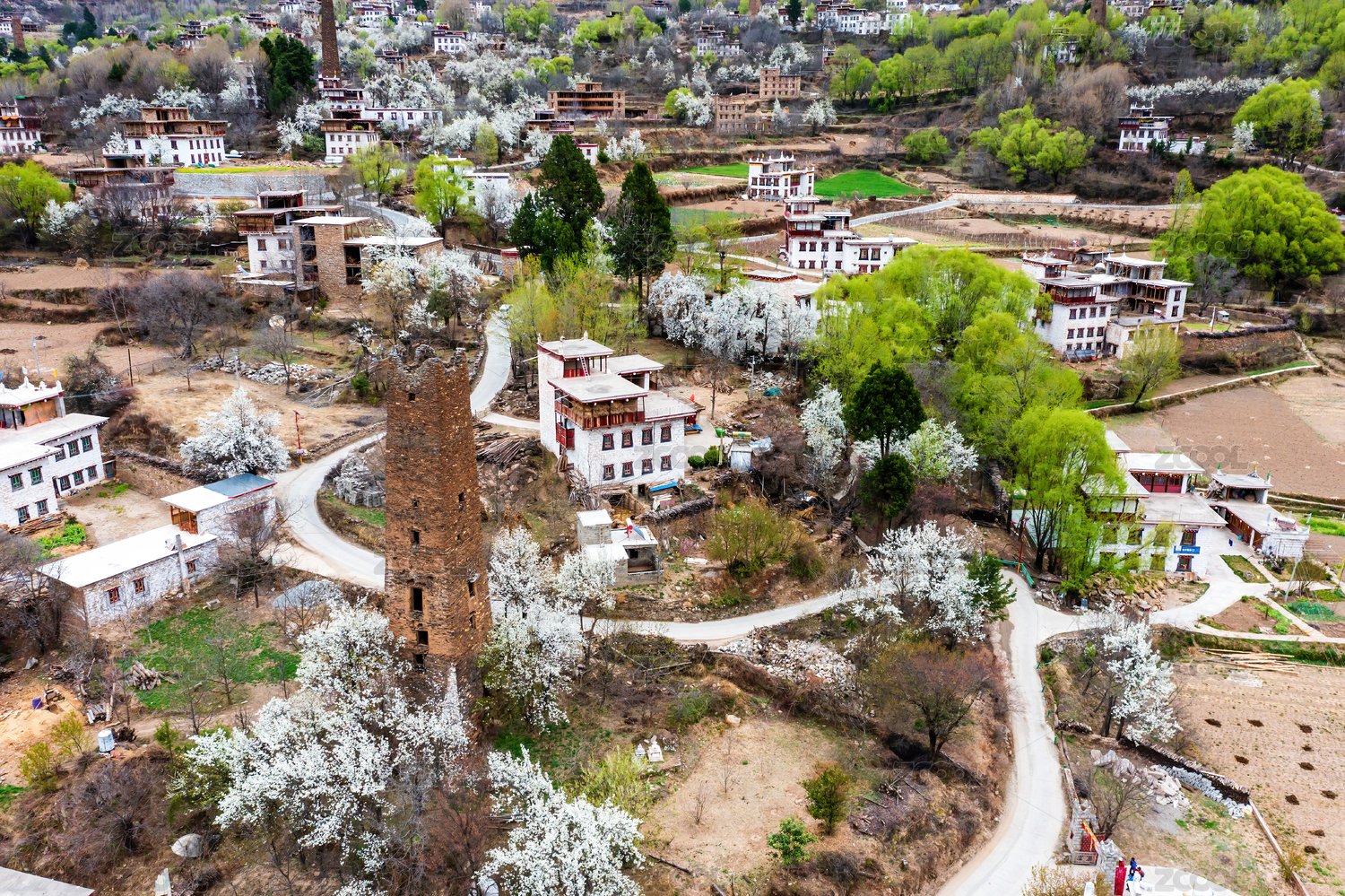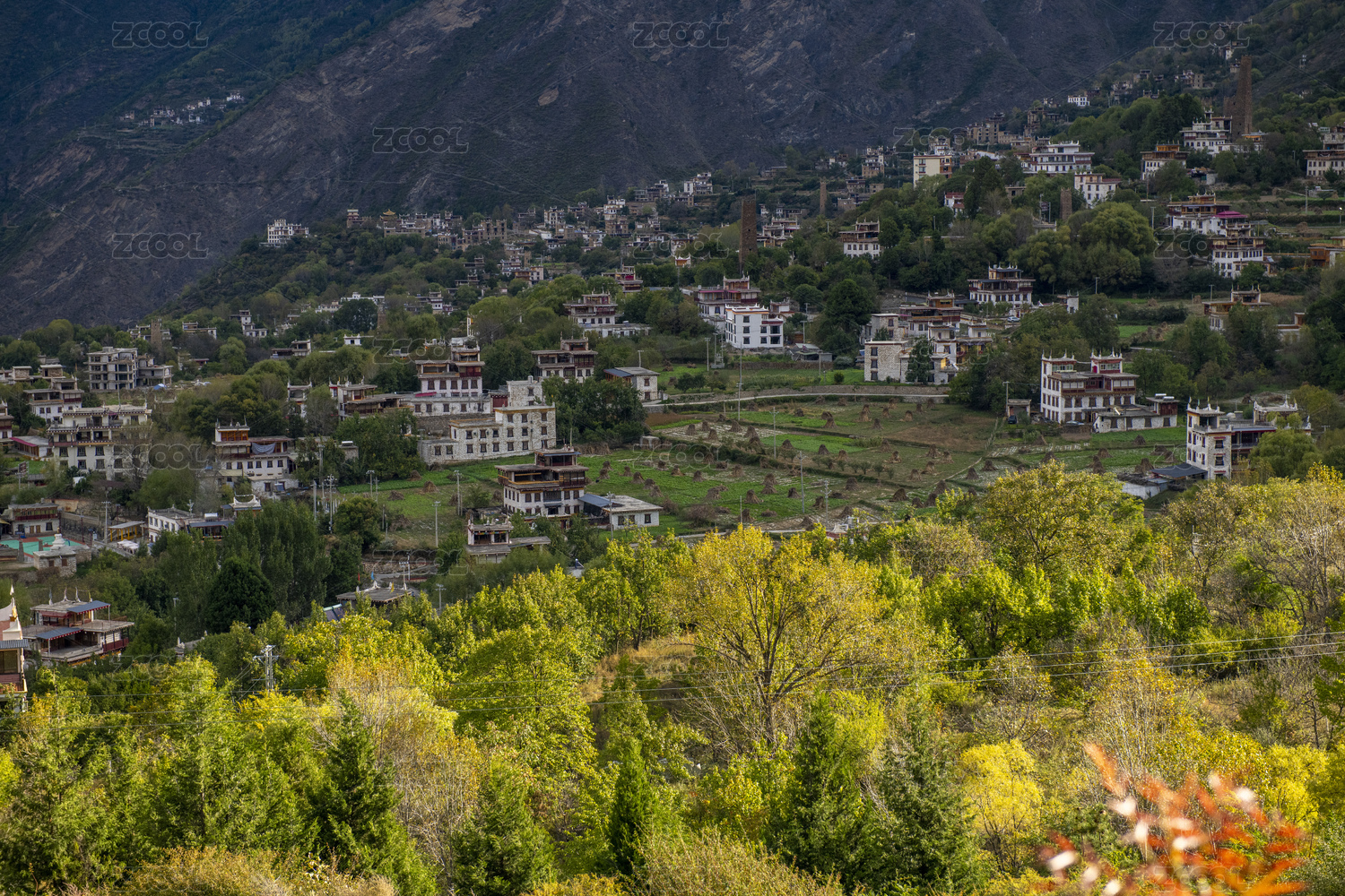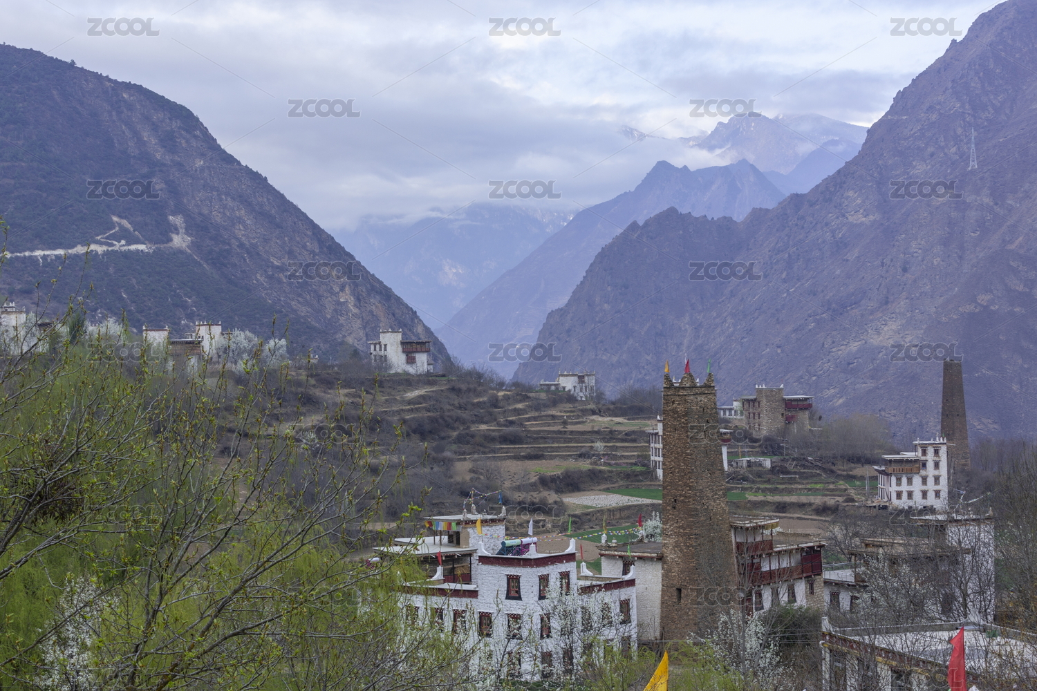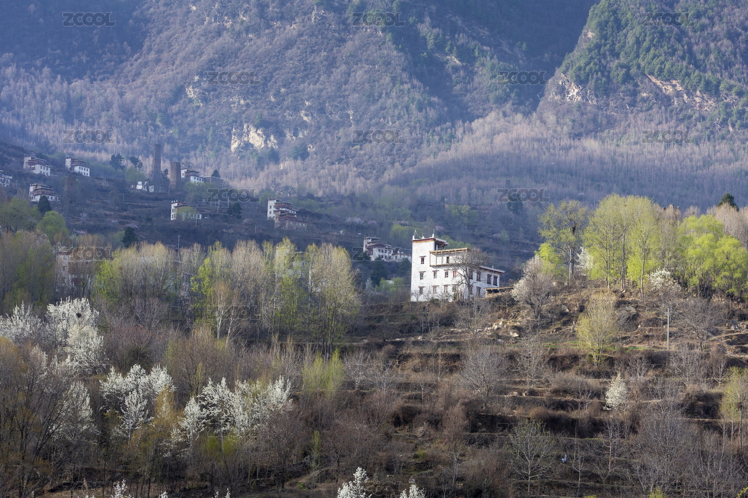 中國(guó)四川甘孜丹巴中路藏寨春天