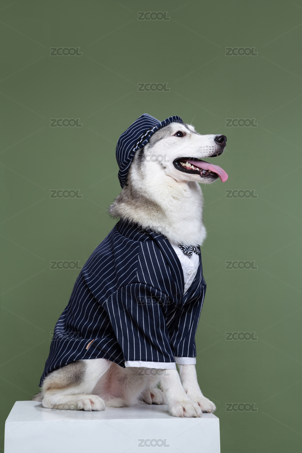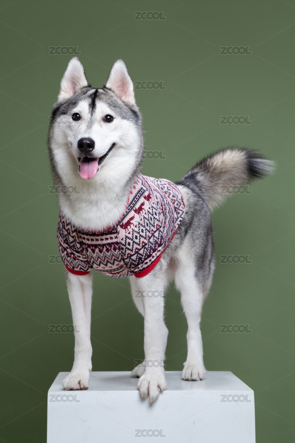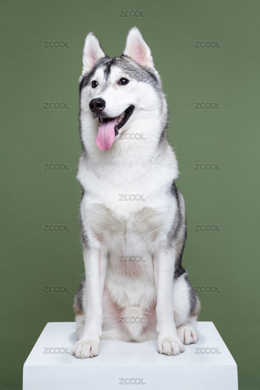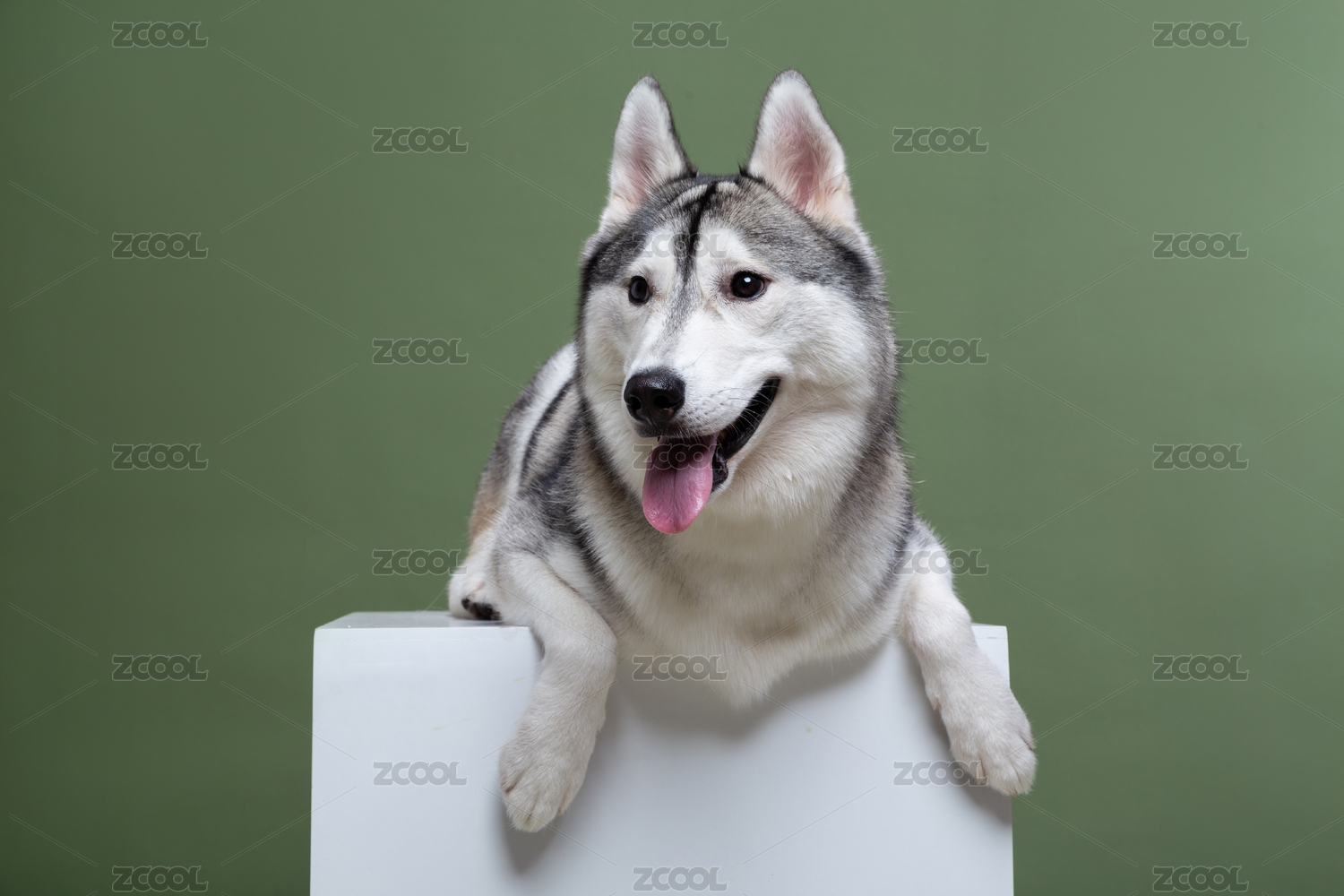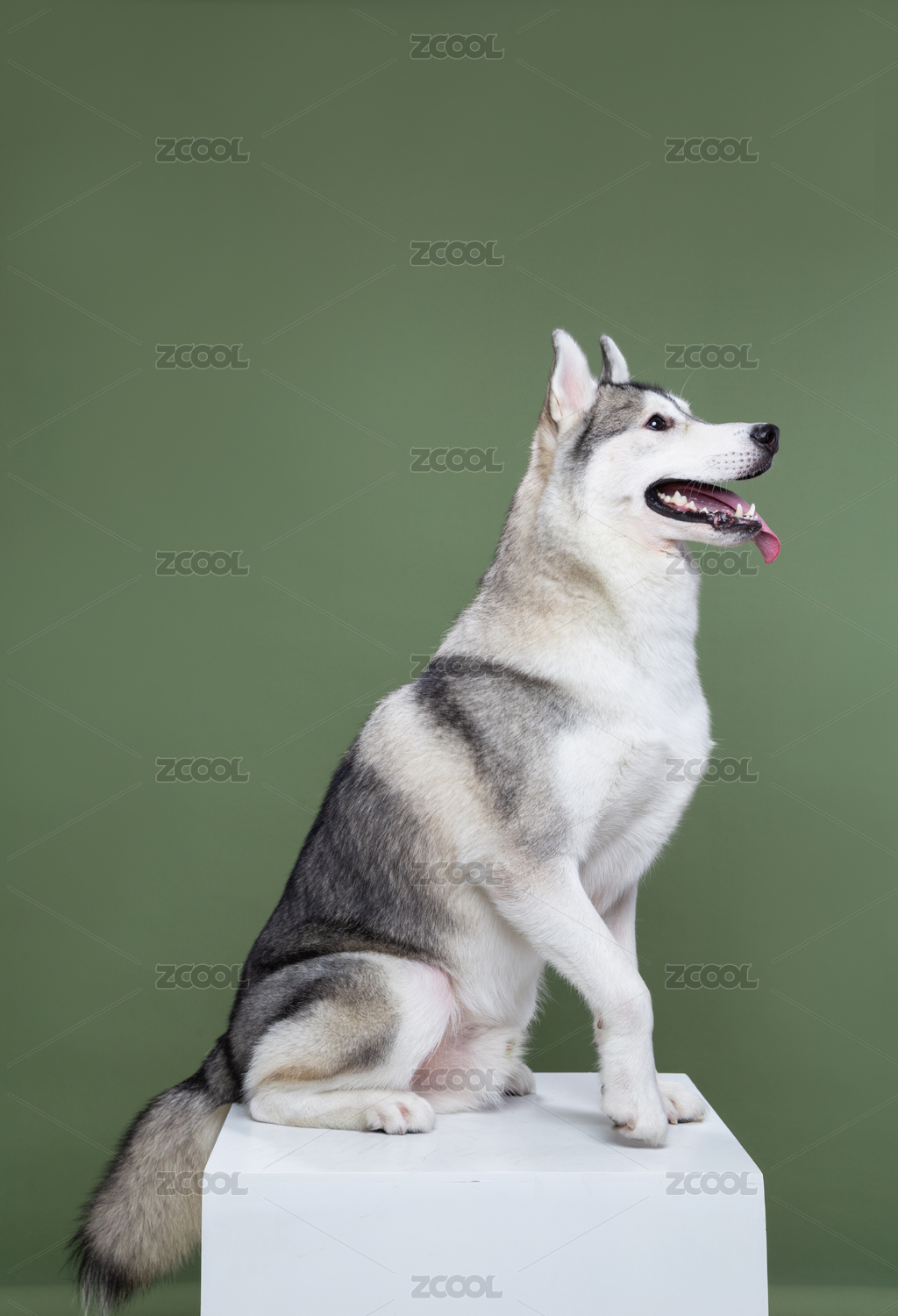 坐立在箱子上的哈士奇?zhèn)让?/div>