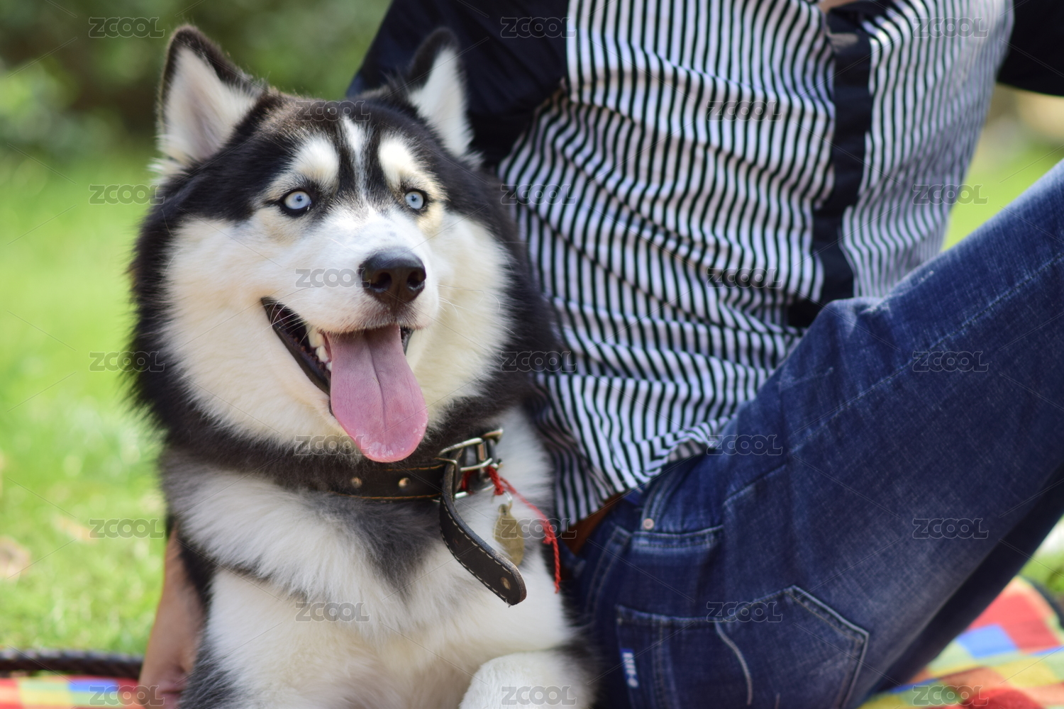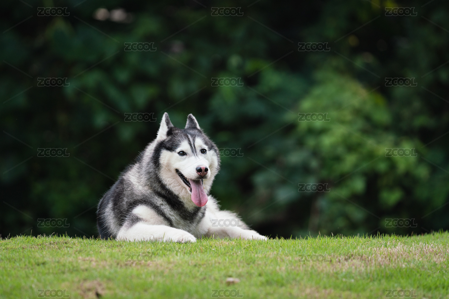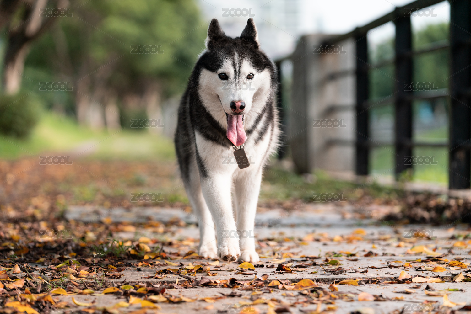 面對(duì)鏡頭笑著吐舌頭的哈士奇犬