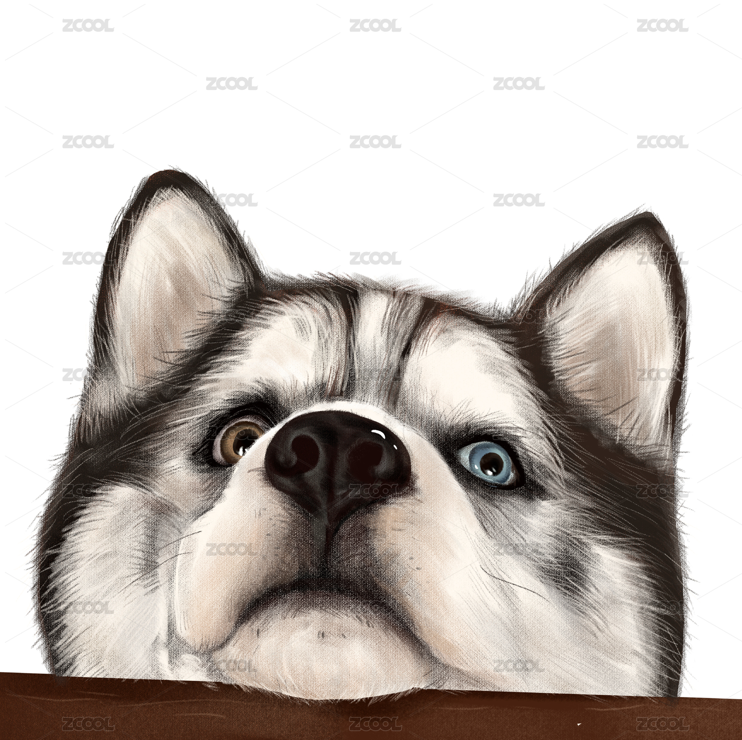 寫實(shí)呆萌哈士奇手繪面部特寫-正面視圖